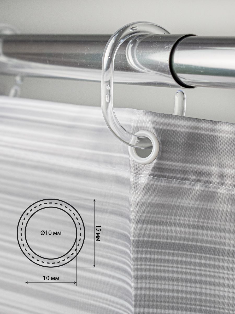 Штора с рисунком, ПЕРЕХОД, в ванную комнату, без колец, полиэстэр