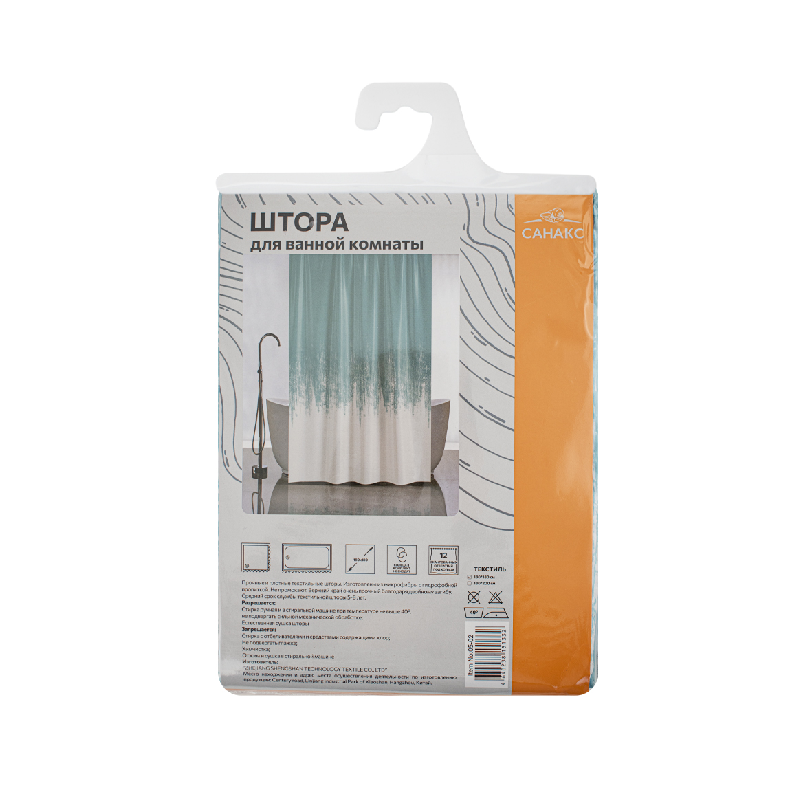 Штора с рельефным теснением, принт ПЕРЕХОД - БИРЮЗА, в ванную комнату, без колец, полиэстер/микрофибра, 180х180 см
