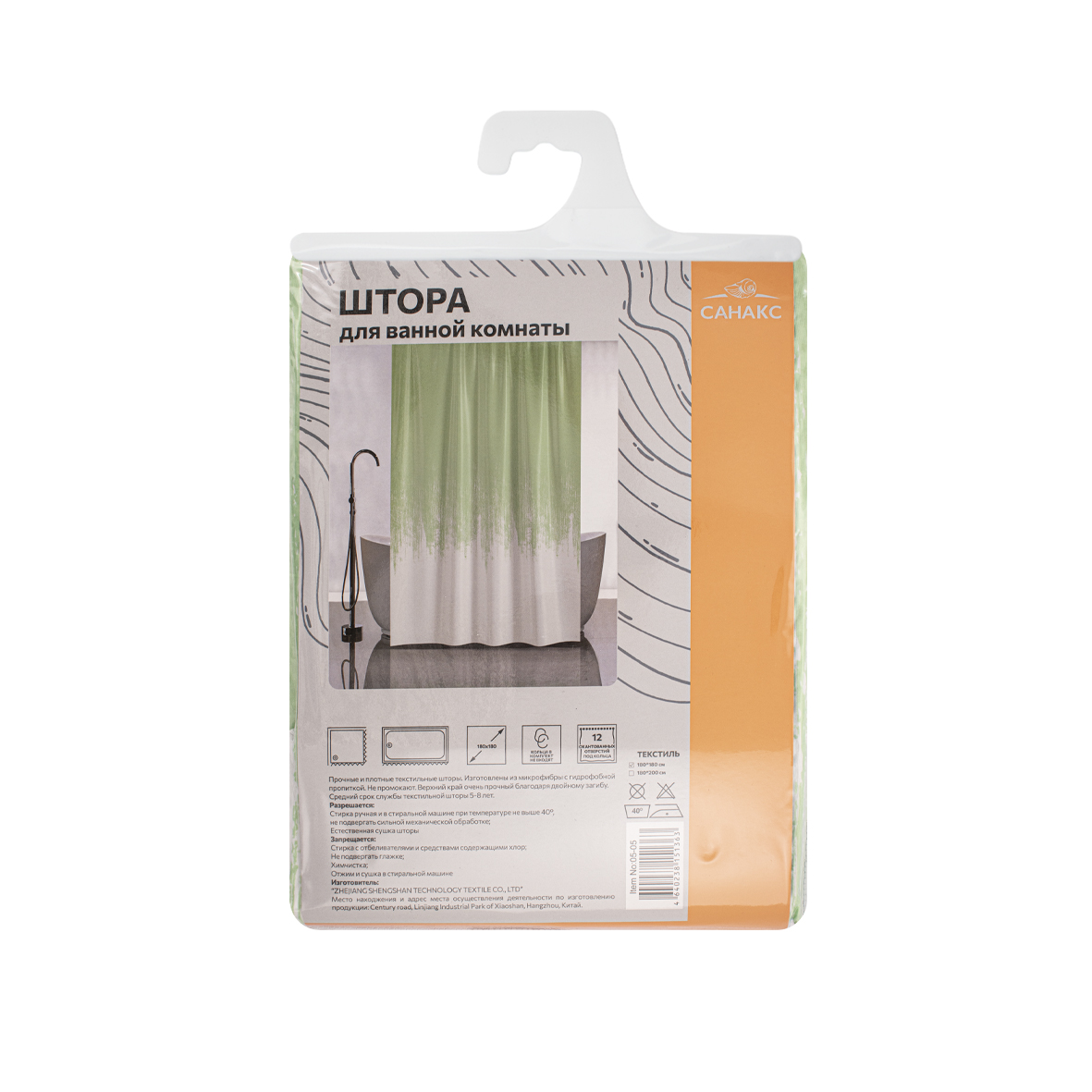 Штора с рельефным теснением, принт ПЕРЕХОД - САЛАТОВЫЙ, в ванную комнату, без колец, полиэстер/микрофибра, 180х180 см