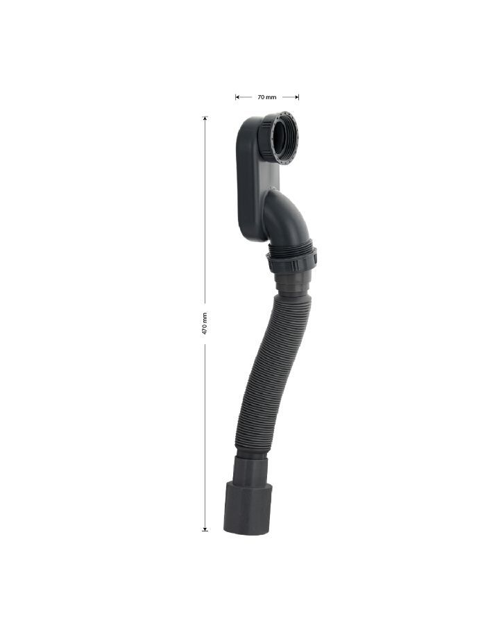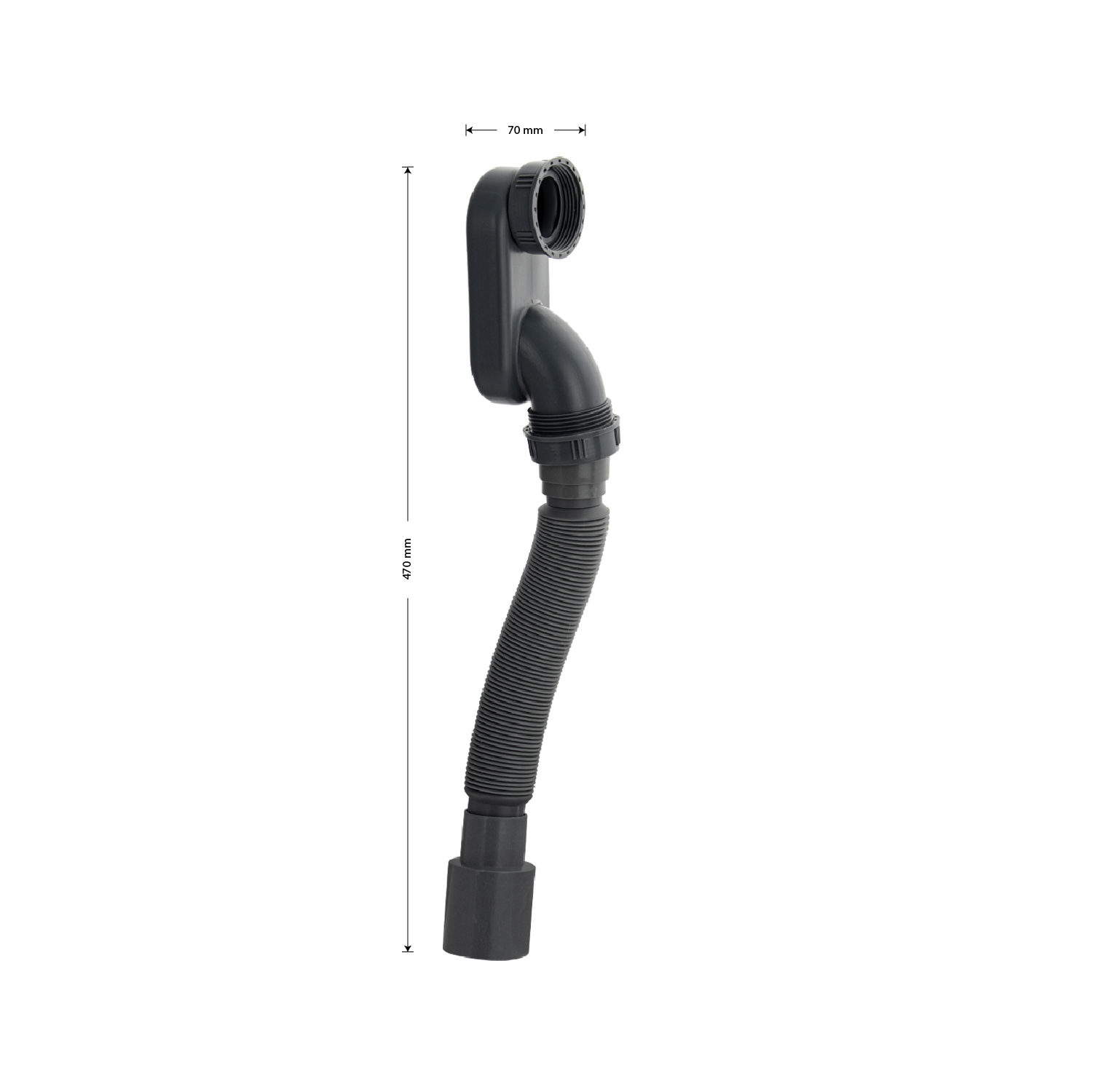 Нижняя часть для всех видов сифонов, из высокопрочного пластика АБС серого цвета предназначена для слива воды из мойки или раковины . Она герметично соединяет раковину с канализационной сетью. Гофрированный сифон с плоским отстойником блокирует неприятные запахи из канализации. В трубе всегда есть небольшое количество воды, которая и предотвращает появление неприятных запахов. Регулируемая длина гофры позволяет установить раковину на нужном расстоянии от канализации. Качественный водопровод — залог чистоты в ванной комнате. Габаритные размеры: диаметр присоединительной гайки 55 мм, диаметр стока 49 мм, длина 470 мм. Вес - 0,200 кг, объём - 0,00138 м3.