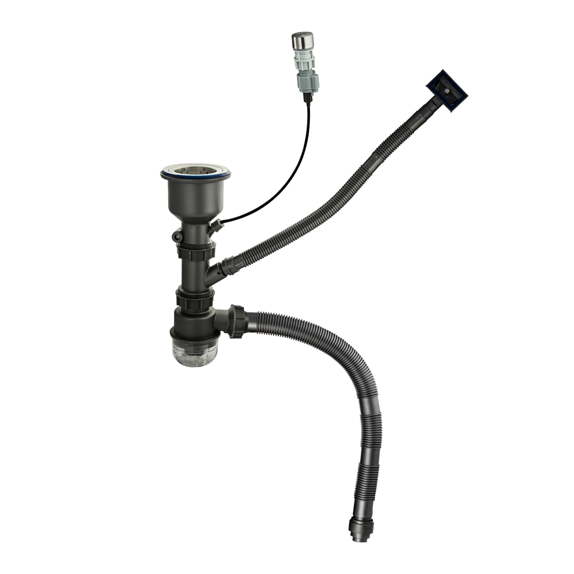 Сифон для кухонных моек, цвет хром, матовый, с диаметром сливного отверстия 90 мм, бутылочного типа с переливом и автоматическим клапаном. С разборным выпуском и нержавеющей решеткой с гофрой, из высокопрочного пластика АБС с затвором от проникновения запахов. Форма сифона позволяет поддерживать хорошую пропускную способность слива сточной воды, выполняя свою главную функцию - формирование гидрозатвора для отсечения неприятных запахов из канализации. Конструкция позволяет легко, без демонтажа, снять отстойник (стакан) и почистить сифон в случае засорения, достать случайно упавшие в слив раковины мелкие ценные вещи. Сифон прост в установке. Габаритные размеры: высота стакана 220 мм, верхняя крышка 110 мм. Комплект: сифон, гофра, перелив, уплотнения. Вес - 1,1 кг, объём - 0,0086 м3.