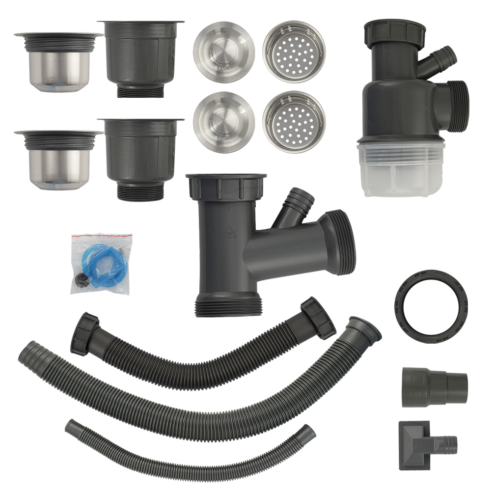 Сифон для кухонных моек двойной, цвет хром, матовый, с диаметром сливного отверстия 90 мм, бутылочного типа с переливом и со сьёмной корзинкой для мусора. С разборным выпуском и нержавеющей решеткой, из высокопрочного пластика АБС с затвором от проникновения запахов. Форма сифона позволяет поддерживать хорошую пропускную способность слива сточной воды, выполняя свою главную функцию - формирование гидрозатвора для отсечения неприятных запахов из канализации. Конструкция позволяет легко, без демонтажа, снять отстойник (стакан) и почистить сифон в случае засорения, достать случайно упавшие в слив раковины мелкие ценные вещи. Сифон прост в установке. Габаритные размеры: высота стакана мм, верхняя крышка мм. Комплект: сифон. перелив, уплотнения. Вес - 0,900 кг, объём - 0,0095 м3