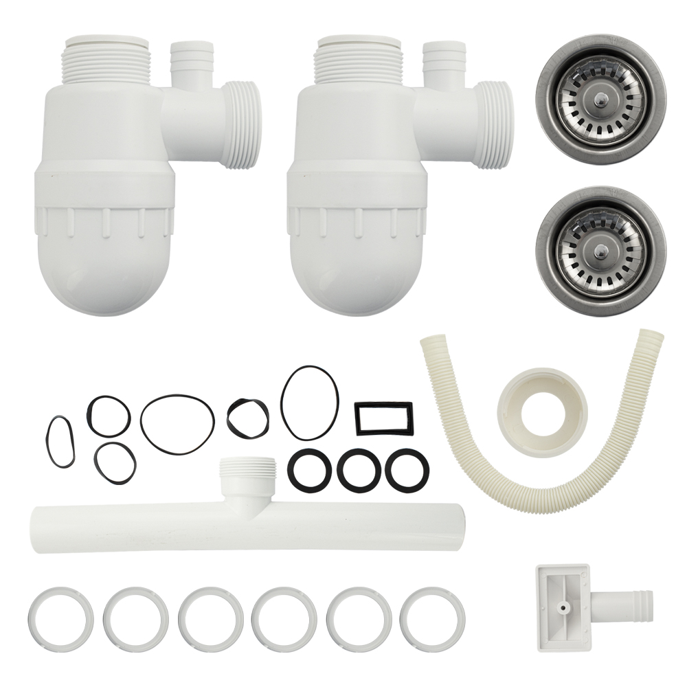 Сифон для кухонных моек двойной, с диаметром сливного отверстия 90 мм, бутылочного типа с переливом. С разборным выпуском и нержавеющей решеткой, из высокопрочного пластика АБС с затвором от проникновения запахов. Форма сифона позволяет поддерживать хорошую пропускную способность слива сточной воды, выполняя свою главную функцию - формирование гидрозатвора для отсечения неприятных запахов из канализации. Конструкция позволяет легко, без демонтажа, снять отстойник (стакан) и почистить сифон в случае засорения, достать случайно упавшие в слив раковины мелкие ценные вещи. Сифон прост в установке. Габаритные размеры: высота стакана 150 мм, верхняя крышка 110 мм. Комплект: сифон. перелив, уплотнения. Вес - 0,700 кг, объём - 0,013 м3.