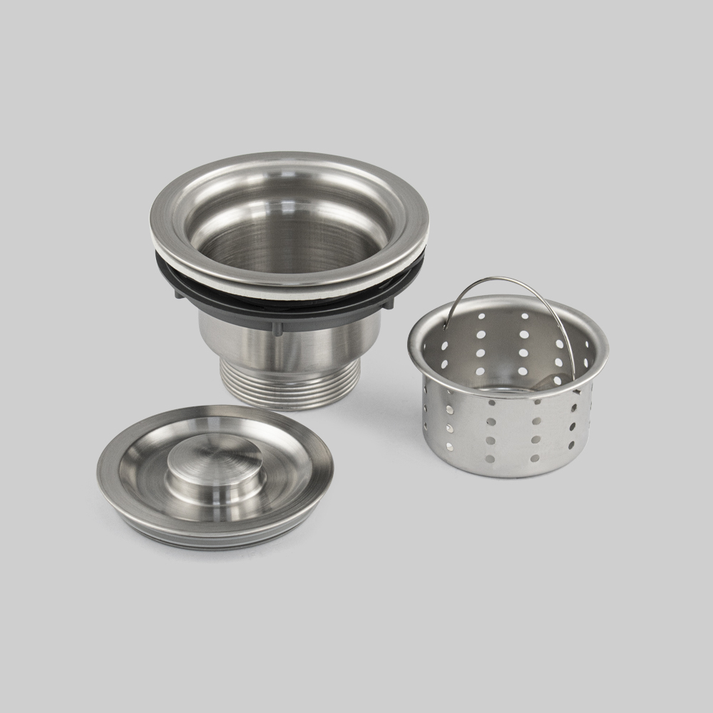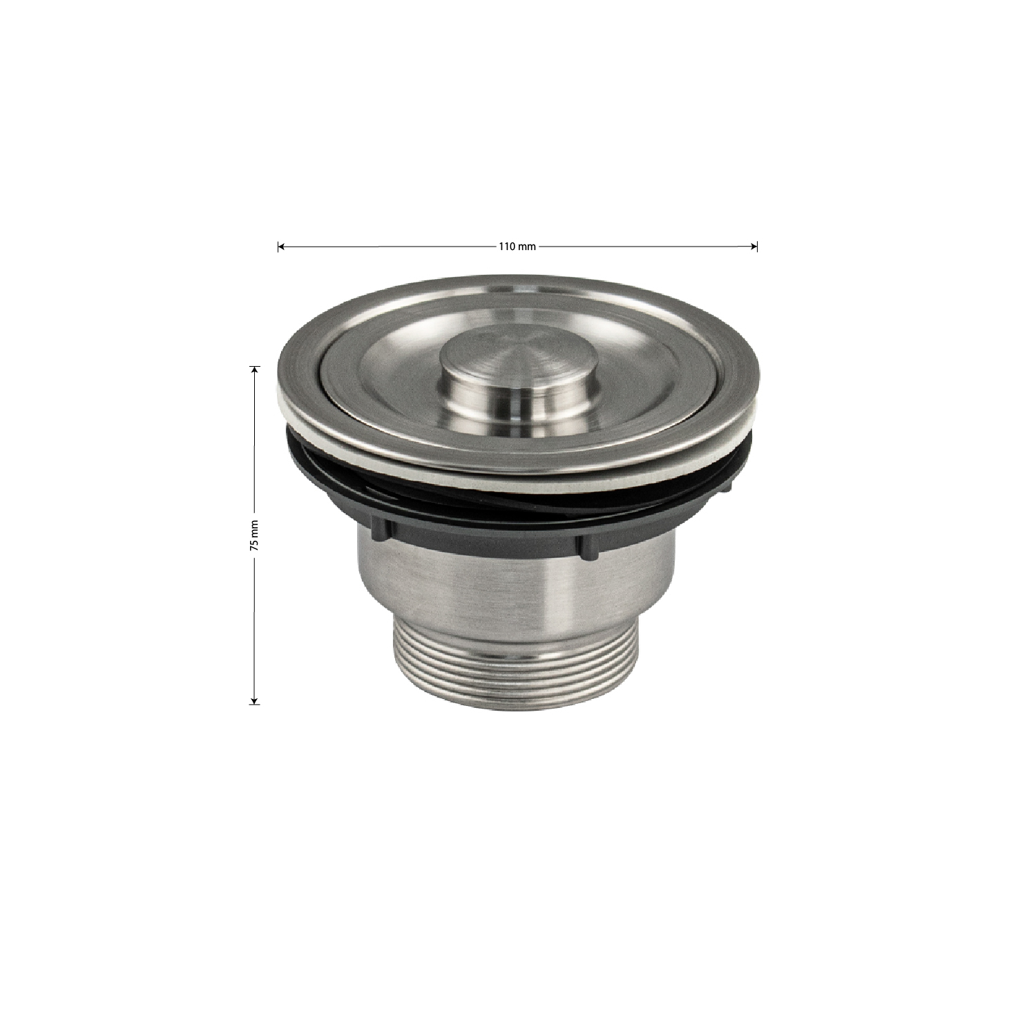 Выпуск для кухонной мойки с горловиной 90 мм, 110 х 50, из нержавеющей стали марки SUS 304, цвет САТИН, с увеличенным объёмом мусоросборника. Высота стакана 75 мм, диаметр 110 мм. Вес - 0,198 кг, объем - 0,00125 м3.