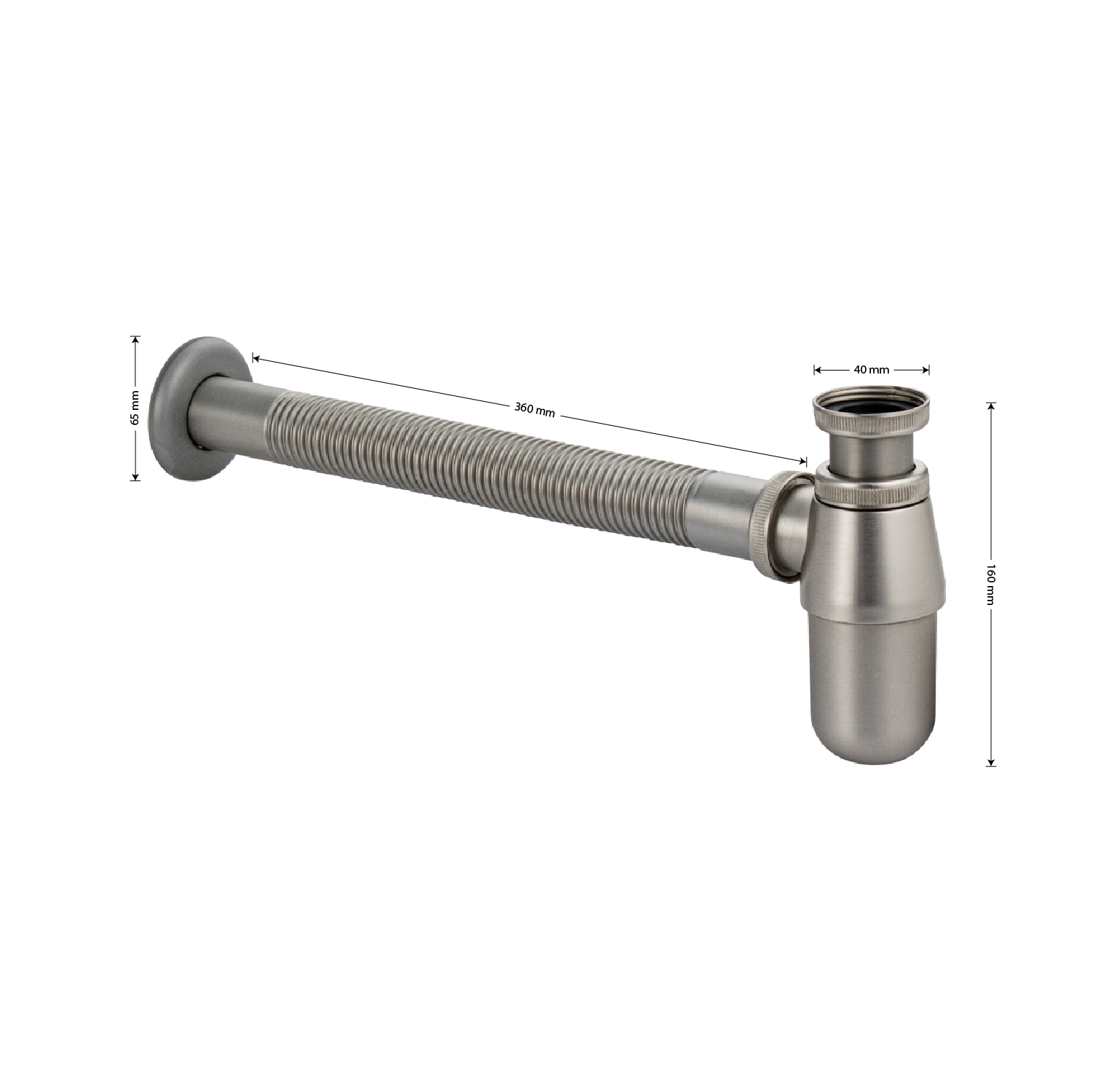 Сифон для раковины матовый, это эстетичное и функциональное устройство для подключения раковины к системе канализации. Сифон изготовлен из нержавеющей стали, что обуславливает его высокую прочность и долговечность. Он устойчив к перепаду температур, поэтому в раковину можно сливать кипяток. Матовая поверхность сохраняет свой вид даже после длительной эксплуатации, поверхность не требует особого ухода – достаточно просто протереть. Изделие с фиксированной погружной трубкой легко собирается и монтируется. Габаритные размеры: высота 140-220 мм, длина 350. Вес - 0,400 кг, объём - 0,0026 м3.