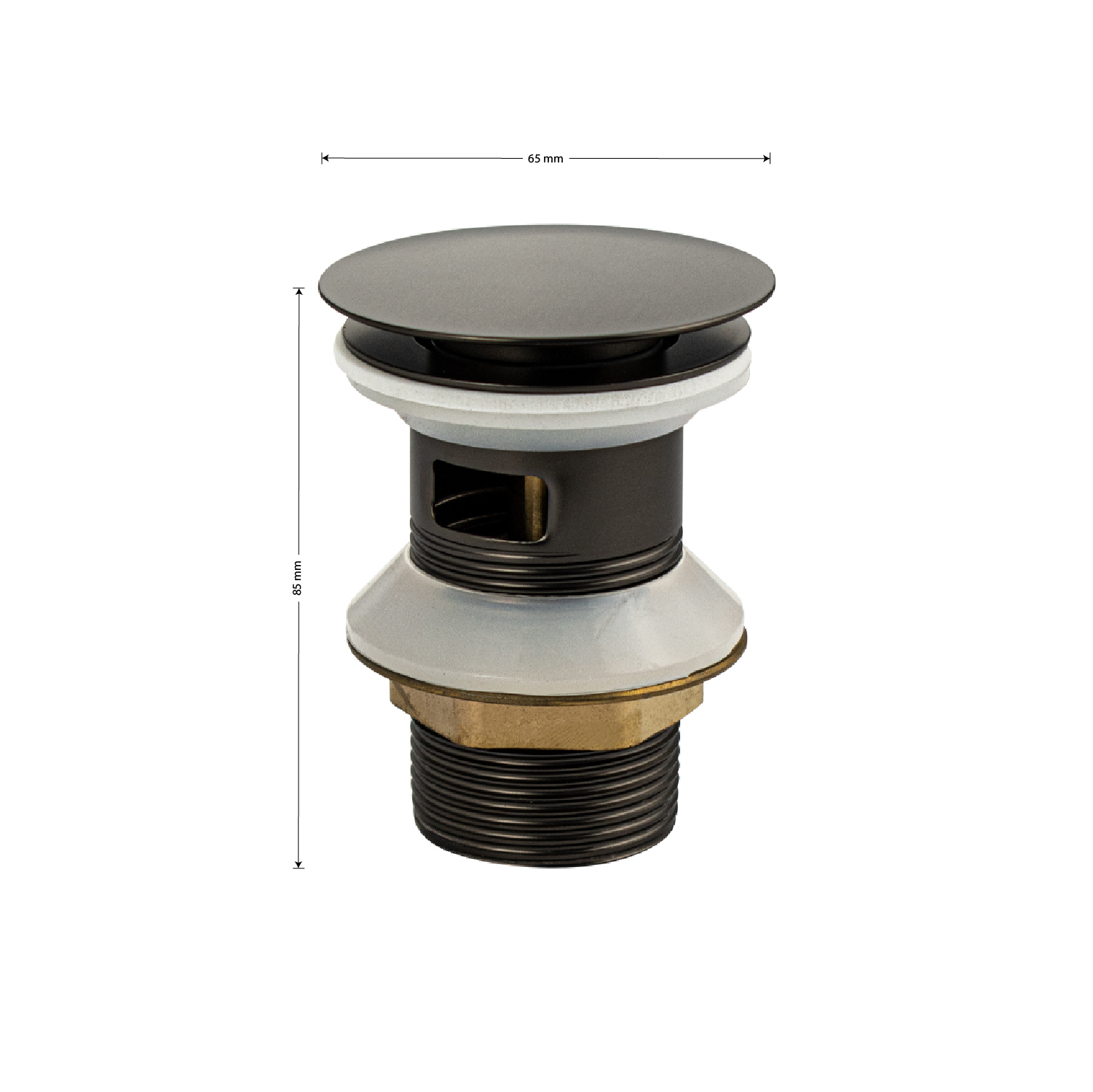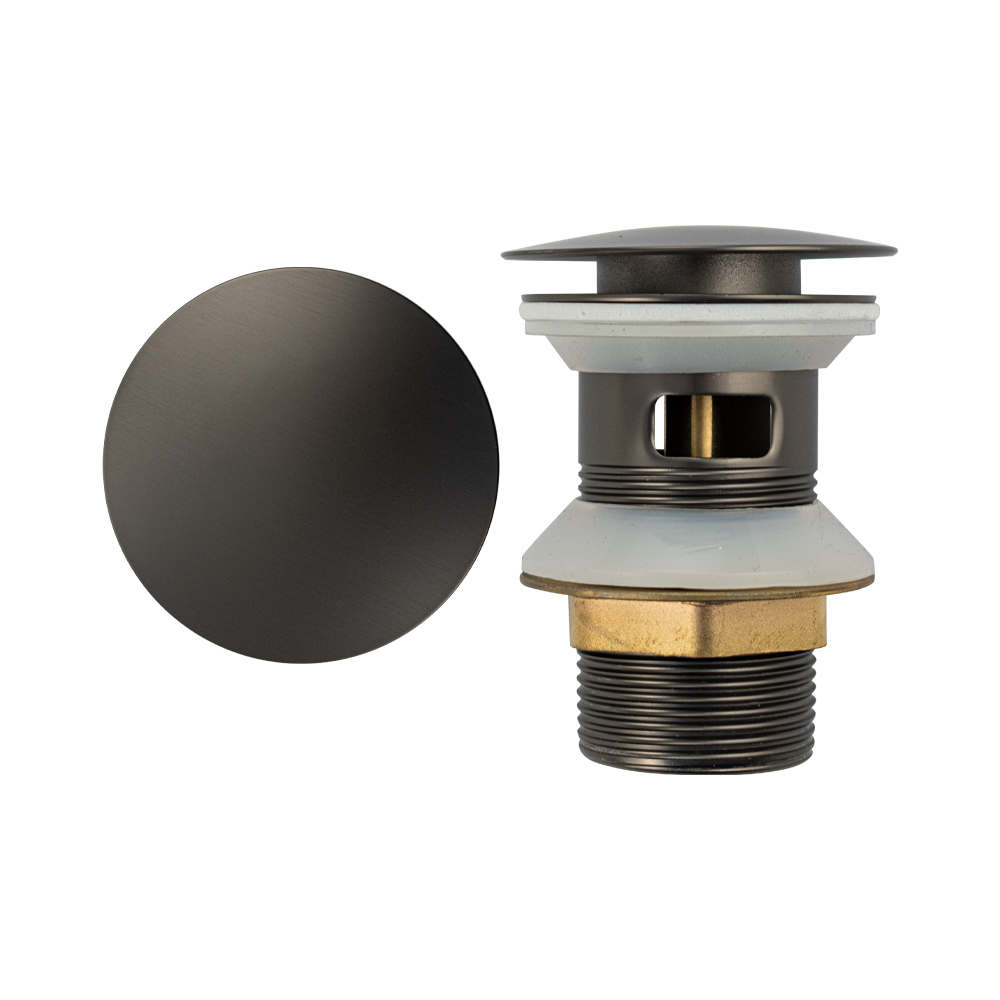 Донный клапан из нержавеющей стали с переливом, цвет графит, представляет собой несложный механизм, который устанавливается непосредственно в сливное отверстие раковины и работает как пробка, с системой “Клик-Клак” 1 ¼' и с большой заглушкой клапан надежно закроет сливное отверстие раковины. Нужно использовать для умывальников с переливом. Габаритные размеры: высота 85 мм, диаметр 65 мм. Вес - 0,25 кг, объём - 0,00053 м3.