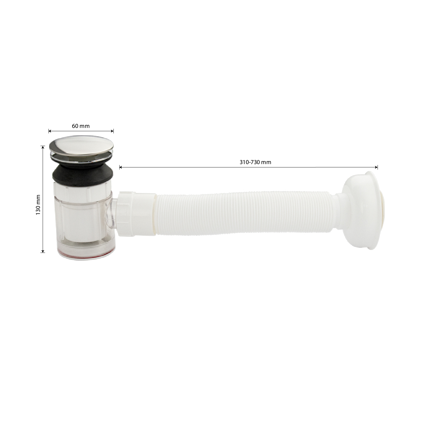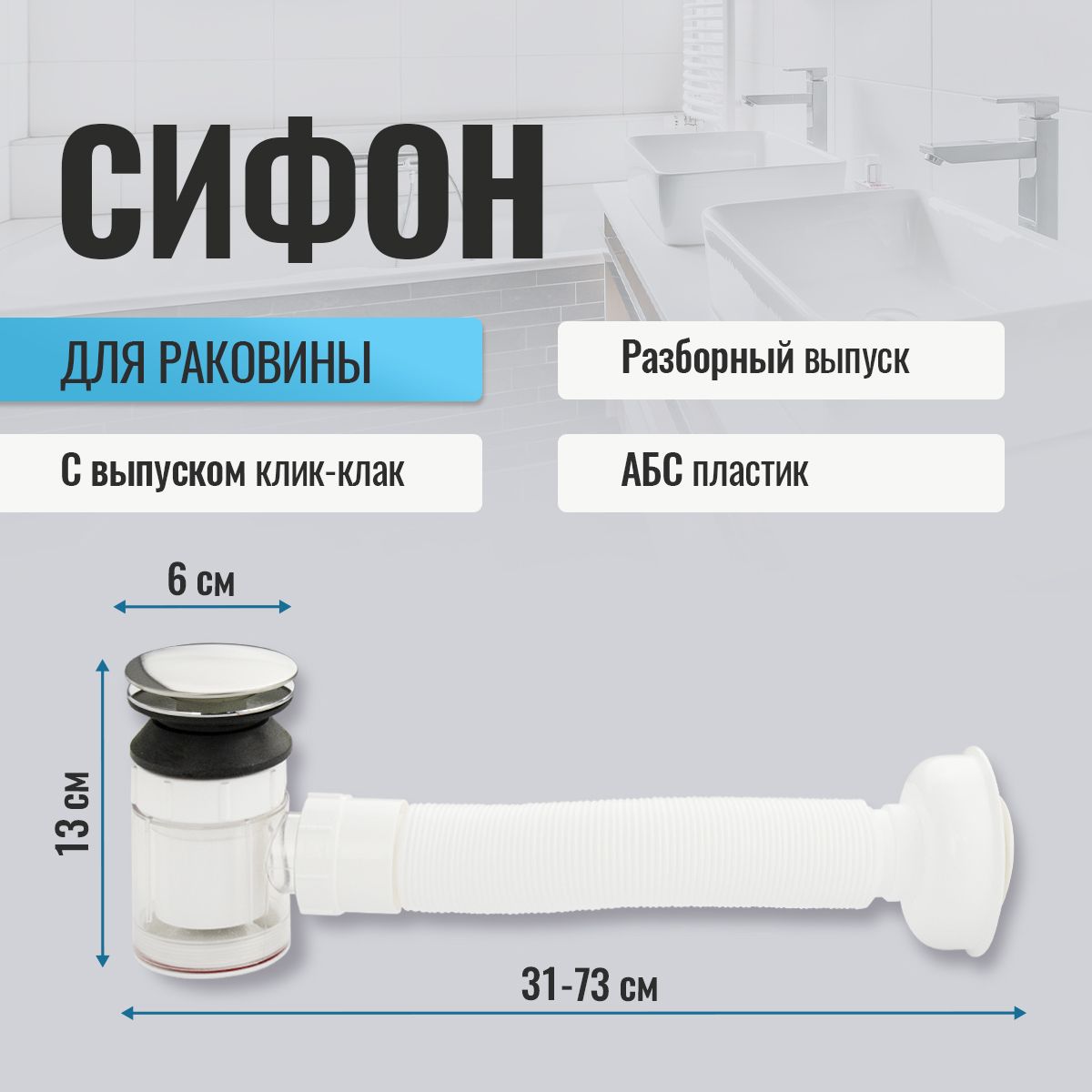 Сифон для кухонных моек и раковин, белый, бутылочного типа. Сифон с разборным выпуском, из высокопрочного пластика АБС с затвором от проникновения запахов. Сифон комплектуется металлическим хромированным выпуском системы "клик-клак" из латуни. Форма сифона позволяет поддерживать хорошую пропускную способность слива сточной воды, выполняя свою главную функцию - формирование гидрозатвора для отсечения неприятных запахов из канализации. Конструкция позволяет легко, без демонтажа, снять отстойник (стакан) и почистить сифон в случае засорения, достать случайно упавшие в слив раковины мелкие ценные вещи. Сифон прост в установке, Габаритные размеры: высота стакана 130 мм, верхняя крышка 60 мм. Комплект: сифон. перелив, уплотнения. Вес - 0,120 кг, объём - 0,00094 м3.