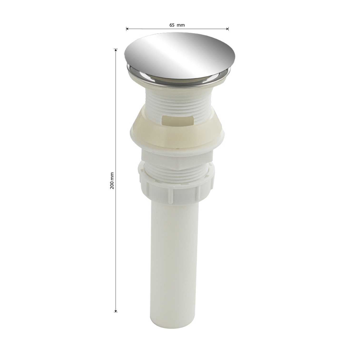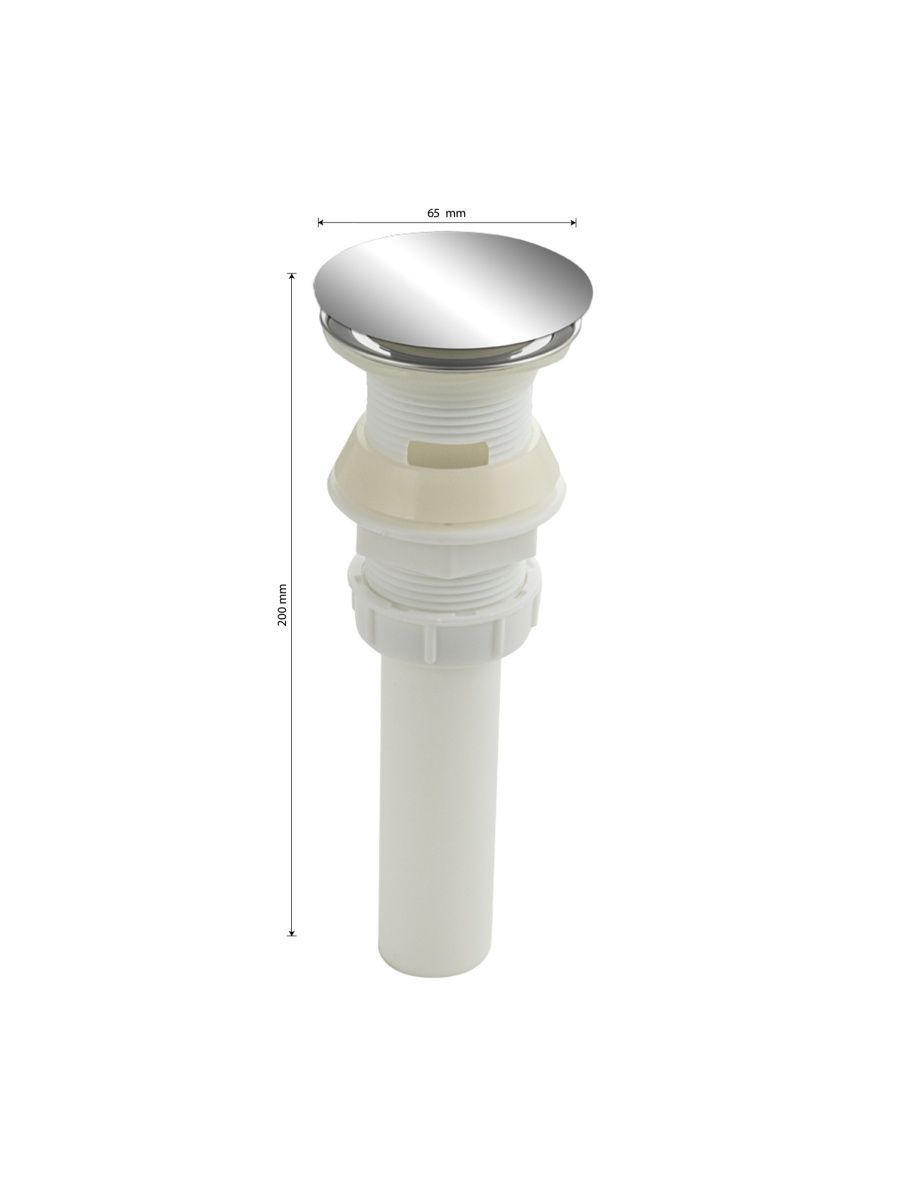 Донный клапан с переливом представляет собой несложный механизм, который устанавливается непосредственно в сливное отверстие раковины и работает как пробка, с системой “Клик-Клак” 1 ¼' и с большой заглушкой клапан надежно закроет сливное отверстие раковины. Нужно использовать для умывальников с переливом. Изготовлено из высокопрочного пластика АБС с хромированной заглушкой. Габаритные размеры: высота 200 мм, диаметр 65 мм. Вес - 0,200 кг, объём - 0,00125 м3.