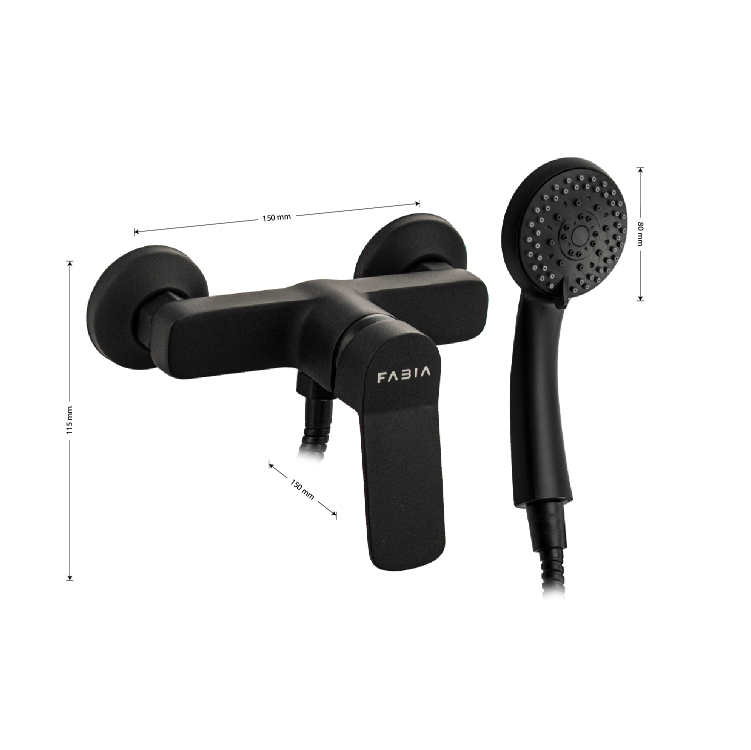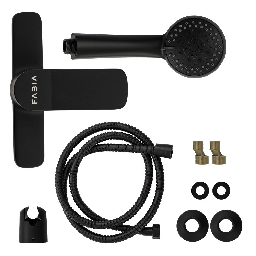 Смеситель черный в ванную / душевую комнату без излива, литой корпус, шаровый. Материал изготовления — ЦАМ (цинк-алюминий-медь). Картридж d = мм, литая ручка, чашки и эксцентрики. Габаритные размеры: ширина 150 мм, высота корпуса 115 мм, глубина 150 мм, двухрежимная душевая лейка d = 80 мм, шланг 150 см. Вес - 1,27 кг, объём - 0,00398 м3. В комплекте паспорт, корпус, душевая лейка, шланг, кронштейн, комплект крепежа и прокладок.