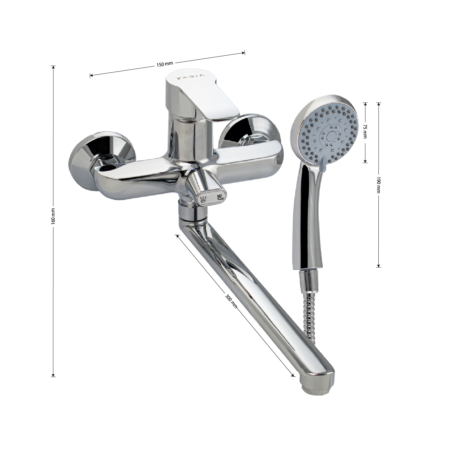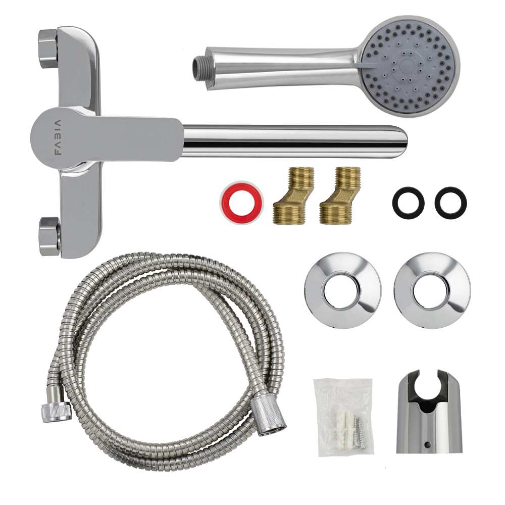 Смеситель хромированный в ванную / душевую комнату с длинным, плоским изливом, тяжёлый, массивный корпус, шаровый, с дивертором м/к на корпусе. Материал изготовления — ЦАМ (цинк-алюминий-медь). Картридж d = 35 мм, литая ручка, аэратор для экономии воды, чашки и эксцентрики из нержавеющей стали. Габаритные размеры: ширина 150 мм, высота корпуса 160 мм, длина излива 300 мм, душевая лейка d = 75 мм, шланг 150 см. Вес - 1,800 кг, объём - 0,00434 м3. В комплекте паспорт, корпус с изливом, дивертор, душевая лейка, шланг, кронштейн, комплект крепежа и прокладок.