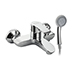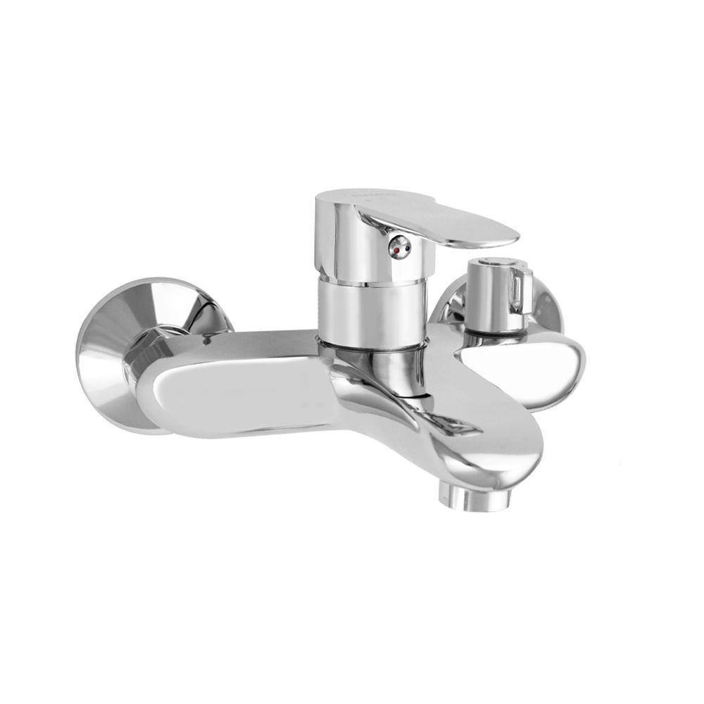 Смеситель в ванную / душевую комнату хромированный с коротким изливом, литой корпус, шаровый, с поворотным дивертором м/к на корпусе. Материал изготовления — ЦАМ (цинк-алюминий-медь). Картридж d = 35 мм, литая ручка, аэратор для экономии воды, чашки и эксцентрики из нержавеющей стали. Габаритные размеры: ширина 150 мм, высота корпуса 90 мм, длина излива 150 мм, круглая душевая лейка d = 75 мм, шланг 150 см. Вес - 1,800 кг, объём - 0,00454 м3. В комплекте паспорт, корпус с изливом, дивертор, душевая лейка, шланг, кронштейн, комплект крепежа и прокладок.