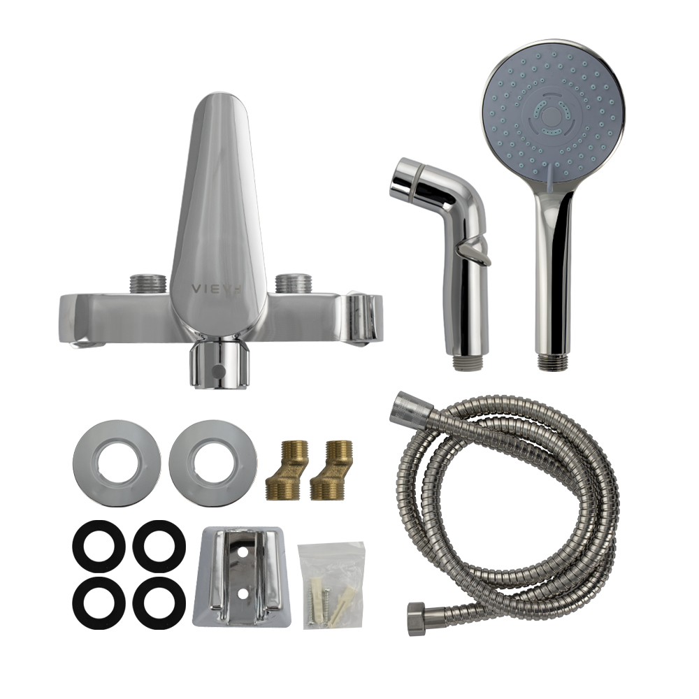 Смеситель с гигиеническим душем и с душевой лейкой. Создаст комфортные условия для поддержания гигиены. Керамический картридж смешивает воду строго до желаемой температуры и подает ее с регулируемым напором. Управление осуществляется плавным и легким поворотом рычага. Эргономичная лейка включается за счет нажимного механизма. Она изготовлена из экологически безопасного материала, не подверженного коррозии и механическим деформациям. Хромированное покрытие придает ей эстетичный вид. Габаритные размеры: ширина корпуса 150 мм, высота лейки 205 мм, диаметр лейки 95 мм, высота гигиенической лейки 130 мм, длина шланга 150 см, диаметр чашки 60 мм. Вес - 1,69 кг, объём - 0,00643 м3. В комплект входит корпус, лейка, смеситель, душевой шлан, крепёж