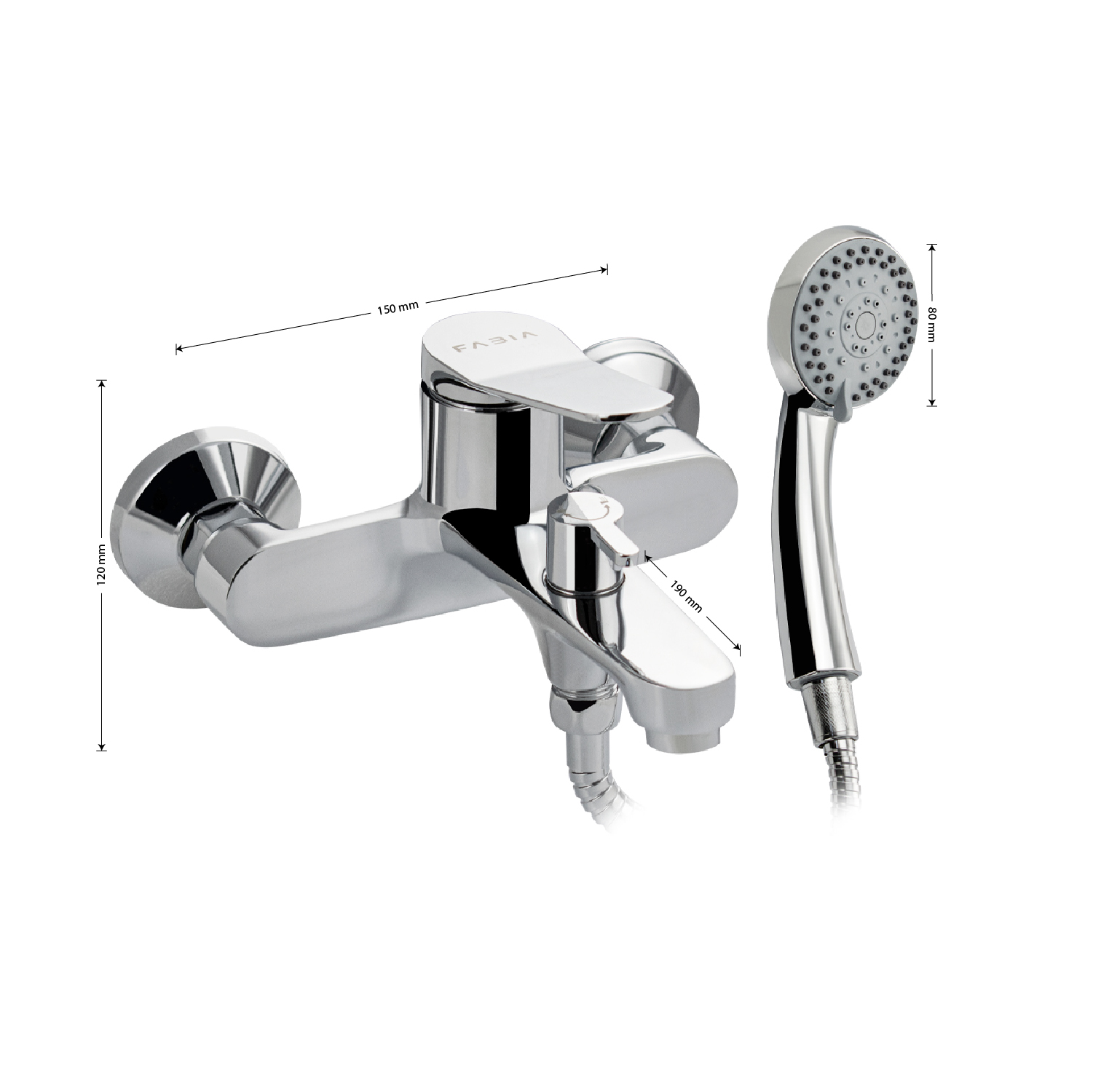 Смеситель хромированный в ванную / душевую комнату с коротким изливом, литой корпус, шаровый, поворотный дивертор на корпусе. Материал изготовления — ЦАМ (цинк-алюминий-медь) + нержавеющая сталь. Картридж d = 35 мм, литая ручка, аэратор для экономии воды, чашки и эксцентрики. Габаритные размеры: ширина 150 мм, высота корпуса 120 мм, длина от стены 190 мм, душевая лейка 80 мм, шланг 150 см. Вес - 1,72 кг, объём - 0,00598 м3. В комплекте паспорт, корпус с изливом, дивертор, душевая лейка, шланг, кронштейн, комплект крепежа и прокладок.