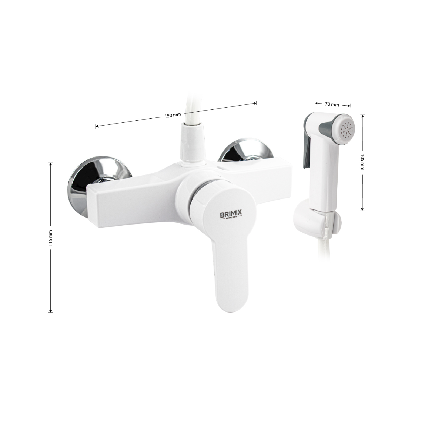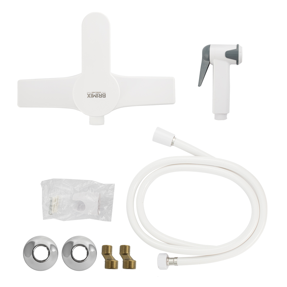 Смеситель из высокопрочного пластика АБС - БЕЛЫЙ для биде, литой корпус, шаровый. Картридж d = 40 мм, литая ручка, хромированные чашки и эксцентрики. Габаритные размеры: ширина 150 мм, высота корпуса 115 мм, шланг 150 см, диаметр чашки 65 мм. Вес - 0,96 кг, объём - 0,0055 м3. В комплекте паспорт, корпус, душевая лейка, шланг, кронштейн, комплект крепежа и прокладок.