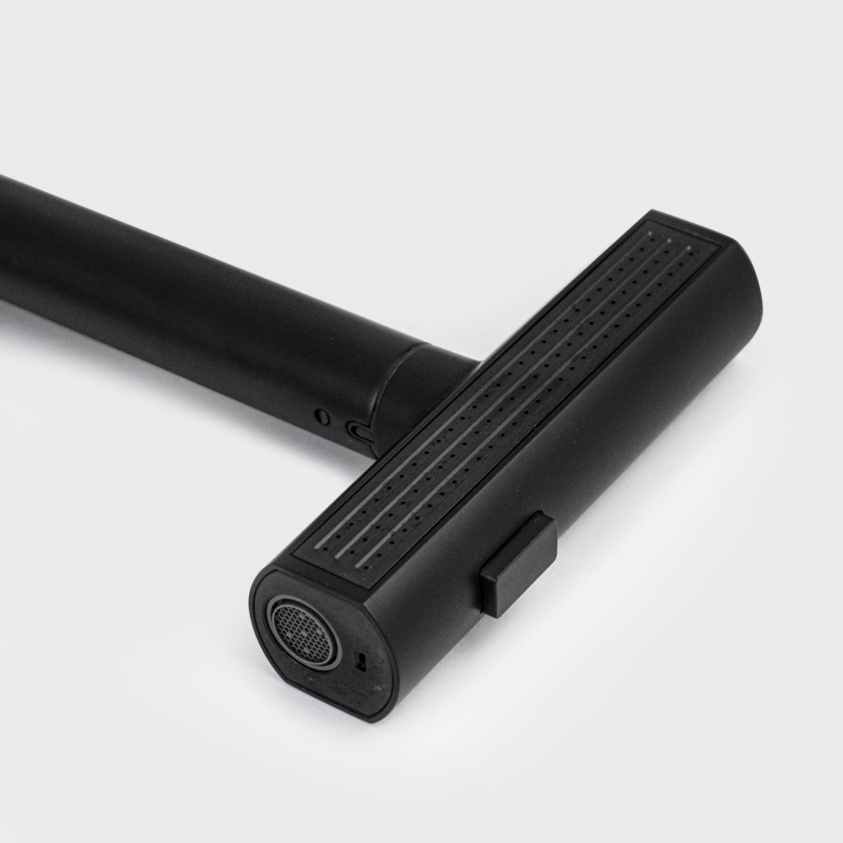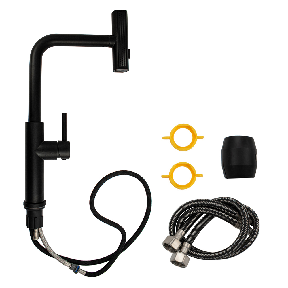 Смеситель для кухонной мойки и раковин, вытяжной излив - лейка с переключением режимов подачи воды, литой матовый корпус, из нержавеющей стали, цвет черный, шаровый. Крепление резьба - гайка, картридж d = 35 мм, ручка литая. Аэратор для экономии воды. Такая модель может использоваться на домашней кухне, на даче, в медицинских учреждениях и общественных местах. Габаритные размеры: высота 450 мм, длина 230 мм, посадочное седло 45 мм, длина резьбы 50 мм. Вес - 1,85 кг, объём - 0,01 м3. В комплекте паспорт, корпус с изливом, подводка 1/2, крепеж, набор прокладок.
