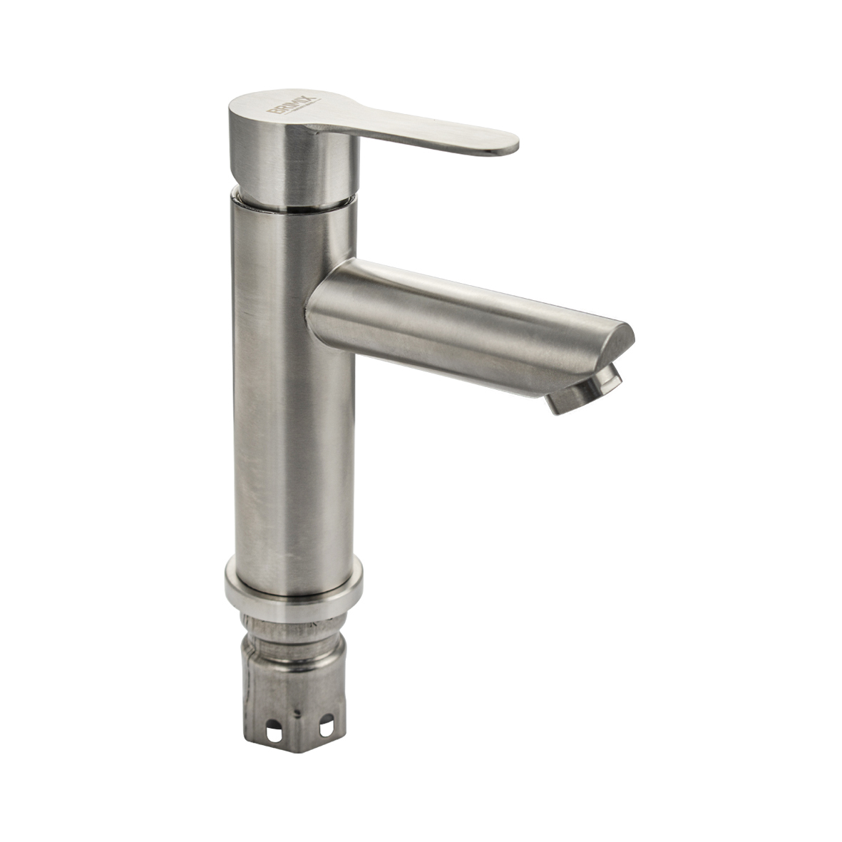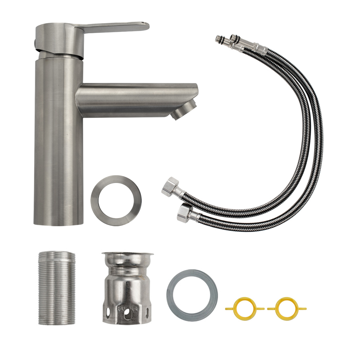 Смеситель для раковины, матовый литой корпус, из нержавеющей стали марки 304, с коротким литым изливом, литая ручка, шаровый. Крепление резьба - гайка, картридж d = 35 мм. Аэратор для экономии воды. Такая модель может использоваться на домашней кухне, на даче, в медицинских учреждениях и общественных местах. Габаритные размеры: высота 175 мм, длина 140 мм, диаметр посадочного седла 50 мм, длина резьбы 55 мм, длина подводки 450 мм. Вес - 0,8 кг, объём - 0,002 м3. В комплекте паспорт, корпус, подводка 1/2, крепеж, набор прокладок.