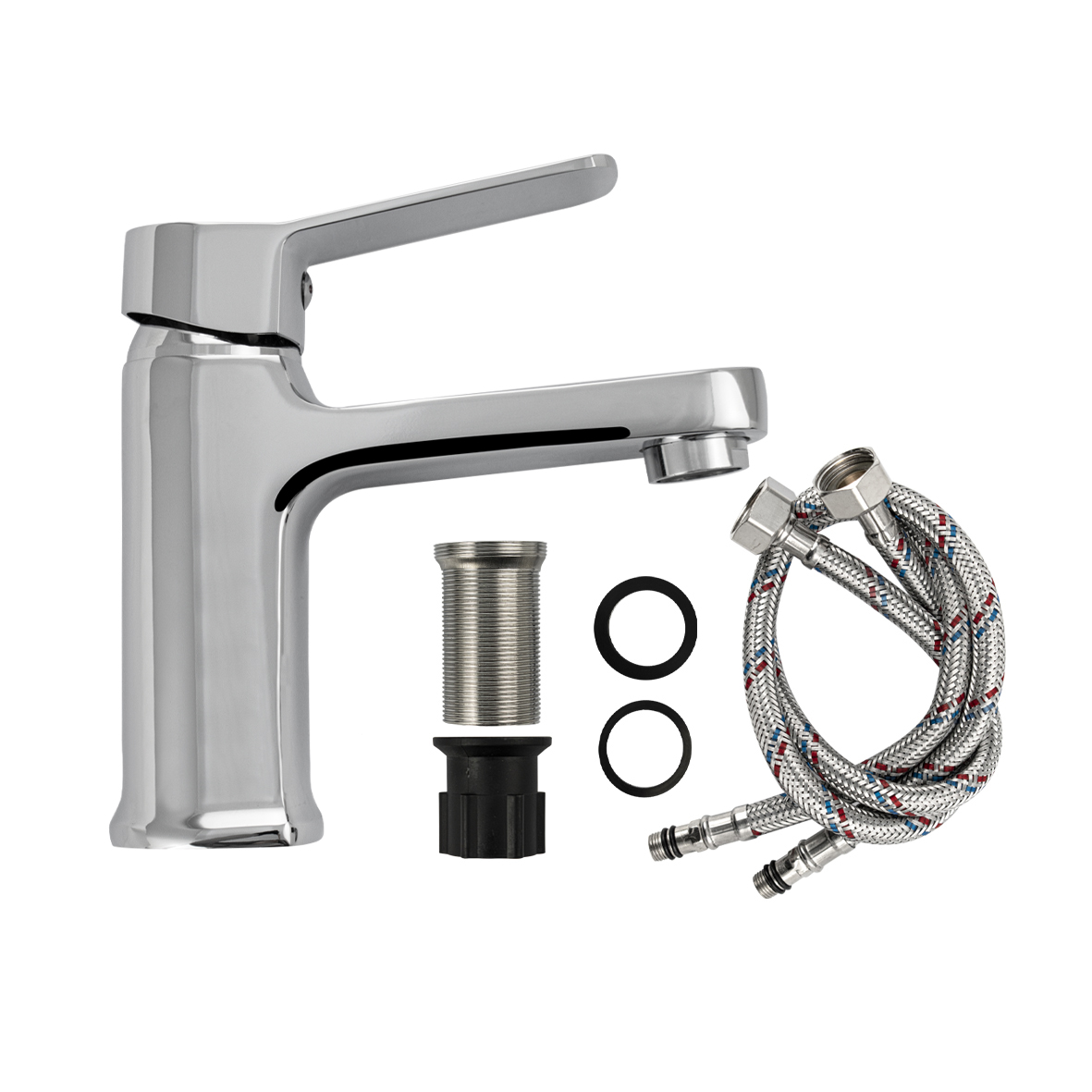 Смеситель для раковины, литой корпус, цвет хром, с прямым плоским изливом, ручка литая, шаровый. Крепление резьба - гайка, картридж d = 35 мм. Аэратор для экономии воды. Такая модель может использоваться на домашней кухне, на даче, в медицинских учреждениях и общественных местах. Габаритные размеры: высота 150 мм, длина 150 мм, посадочное седло 50 мм, длина резьбы 50 мм, длина подводки 500 мм. Вес - 1,0 кг, объём - 0,00239 м3. В комплекте паспорт, корпус, подводка 1/2, крепеж, набор прокладок.