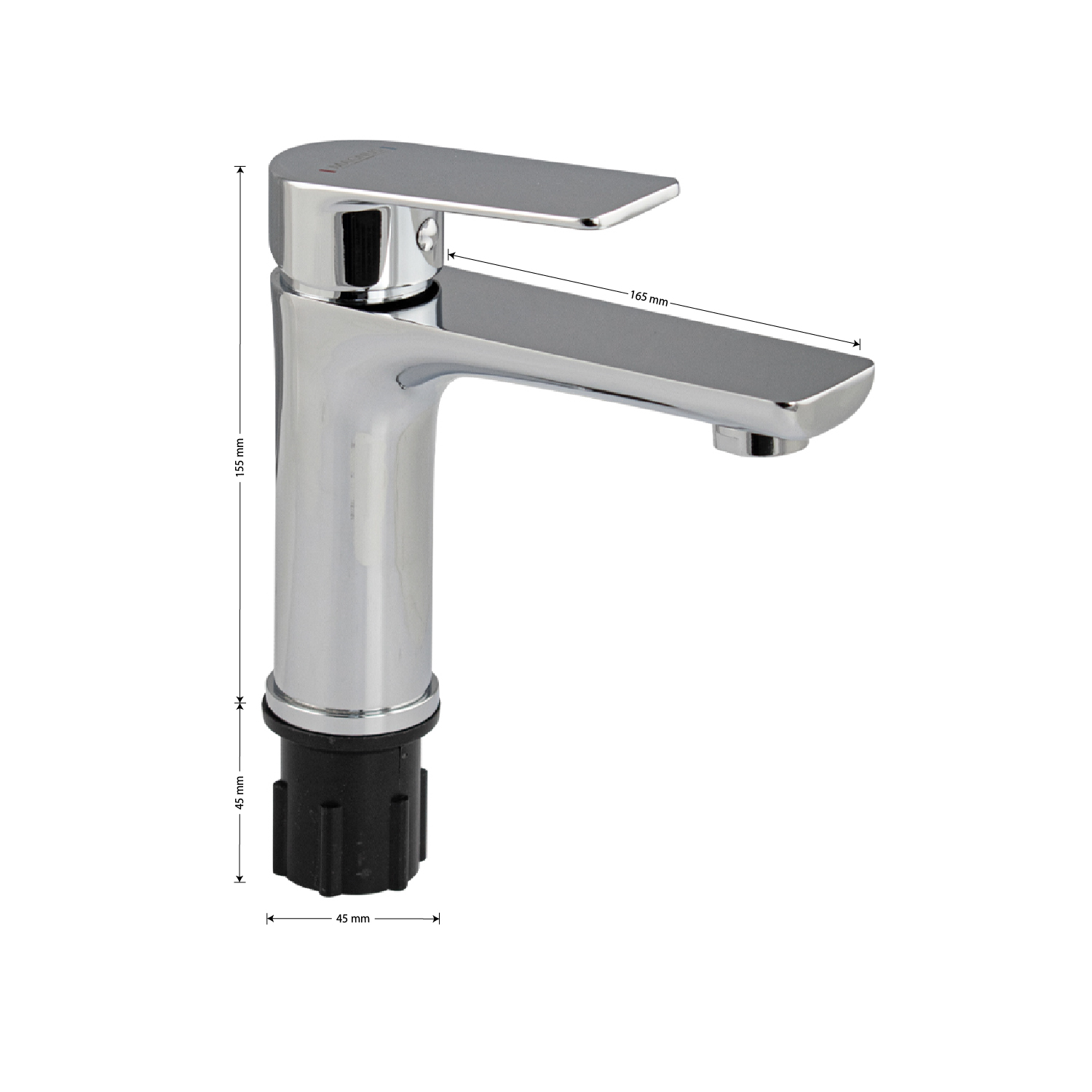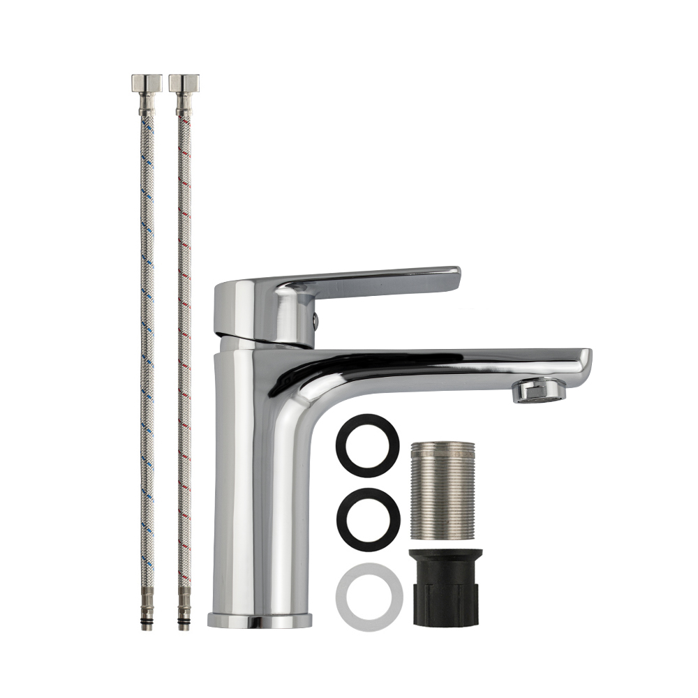 Смеситель для раковины, хромированный литой корпус, из нержавеющей стали марки SUS 304, с коротким литым изливом, литая ручка, шаровый. Крепление резьба - гайка, картридж d = мм. Аэратор для экономии воды. Такая модель может использоваться на домашней кухне, на даче, в медицинских учреждениях и общественных местах. Габаритные размеры: высота 155 мм, длина 165 мм, диаметр посадочного седла 45 мм, длина резьбы мм, длина подводки 450 мм. Вес - кг, объём - м3. В комплекте паспорт, корпус, подводка 1/2, крепеж, набор прокладок.