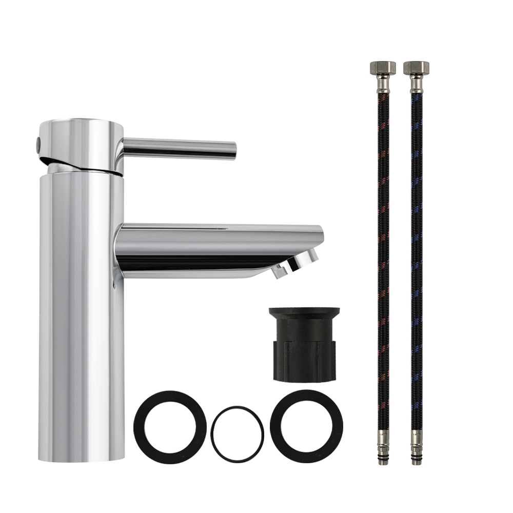 Смеситель для раковины, хромированный литой корпус, из нержавеющей стали марки SUS 304, с коротким литым изливом, литая ручка, шаровый. Крепление резьба - гайка, картридж d = 35 мм. Аэратор для экономии воды. Такая модель может использоваться на домашней кухне, на даче, в медицинских учреждениях и общественных местах. Габаритные размеры: высота 165 мм, длина 137 мм, диаметр посадочного седла 40 мм, длина резьбы 45 мм, длина подводки 450 мм. Вес - 0.56 кг, объём - 0.00234 м3. В комплекте паспорт, корпус, подводка 1/2, крепеж, набор прокладок.