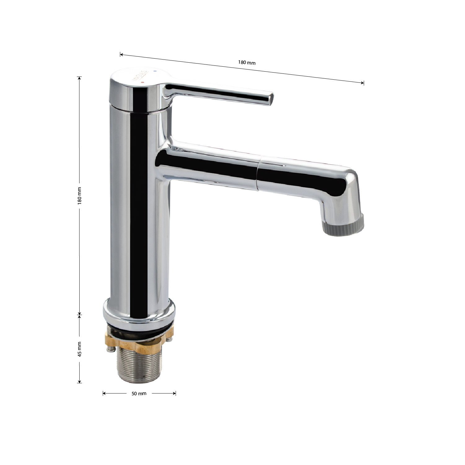 Смеситель для раковин, поворотный излив с эффектом фонтана, литой хромированный корпус, из латуни, шаровый. Крепление резьба - гайка, картридж d = 35 мм, ручка литая. Аэратор для экономии воды. Такая модель может использоваться на домашней кухне, на даче, в медицинских учреждениях и общественных местах. Габаритные размеры: высота 180 мм, длина 180 мм, диаметр посадочного седла 50 мм, длина резьбы 45 мм, длина подводки 600 мм. Вес - 1.63 кг, объём - 0,005 м3. В комплекте паспорт, корпус с изливом, подводка 1/2, крепеж, набор прокладок.