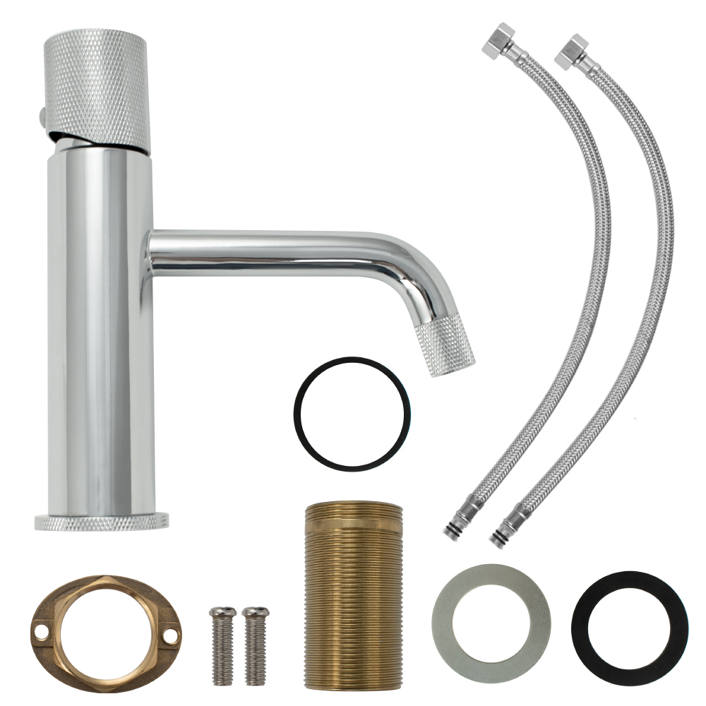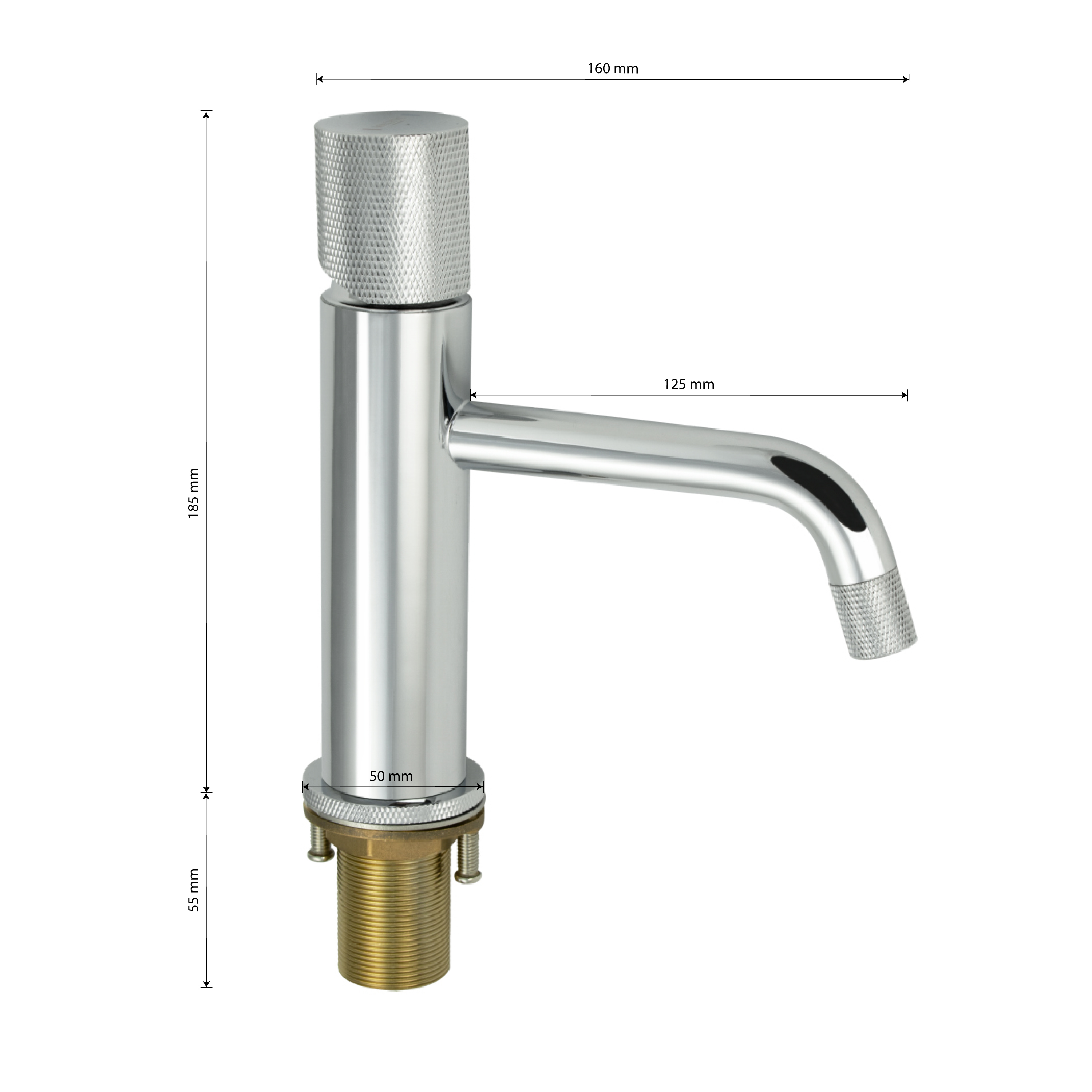 Смеситель для раковины, латунный корпус, хромированный, с коротким изогнутым изливом, литой корпус, рифлённая ручка, шаровый. Крепление резьба - гайка, картридж d = 35 мм. Аэратор для экономии воды. Габаритные размеры: высота 185 мм, длина 160 мм, длина излива 125 мм, диаметр посадочного седла 50 мм, длина резьбы 55 мм, длина подводки 400 мм. Вес - 0,900 кг, объём - 0,00388 м3. В комплекте паспорт, корпус, подводка 1/2, крепеж, набор прокладок.