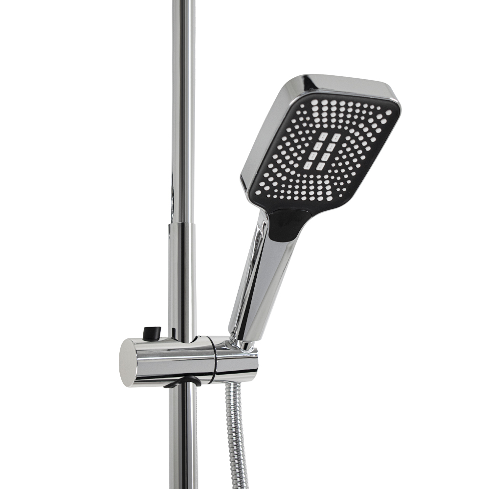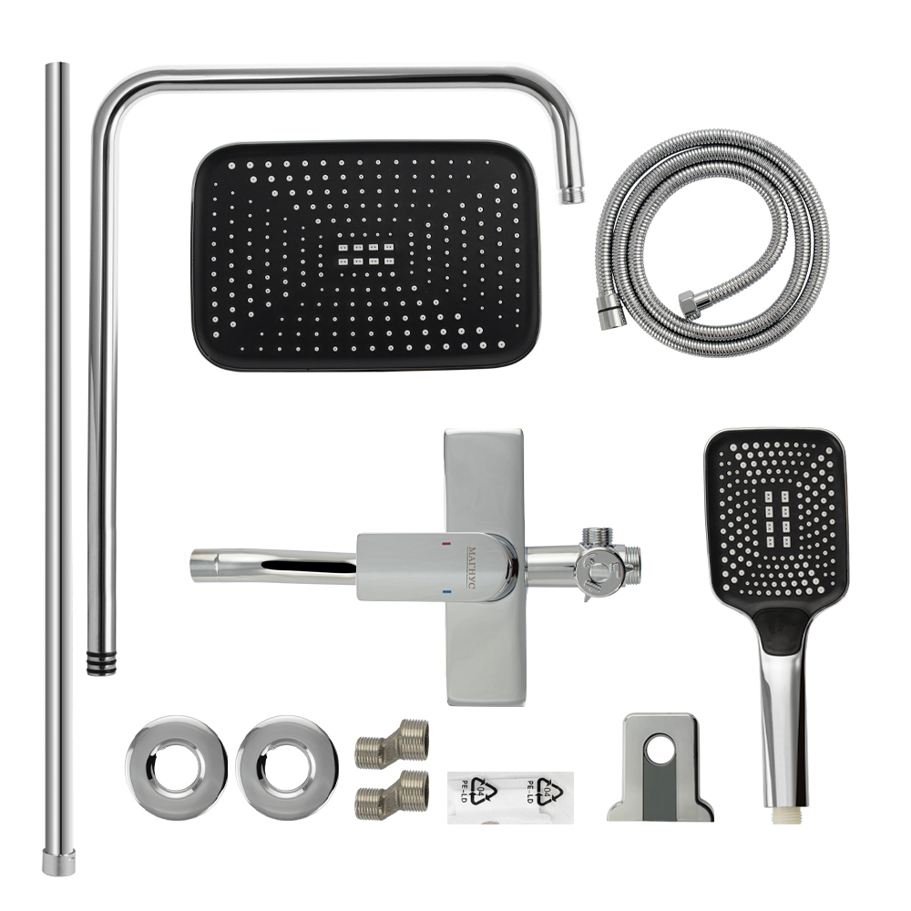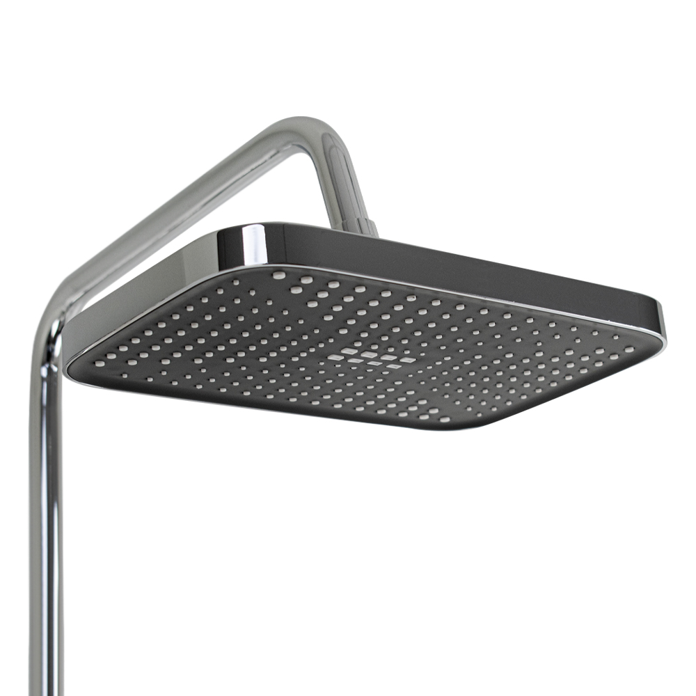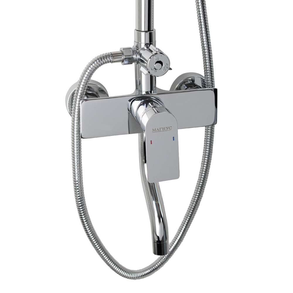 Смеситель + стойка душевая "тропический душ" с двумя лейками в ванную, хромированные. В дизайне душевой стойки гармонично соединились строгие линии и мягкие переходы. Она отлично впишется в интерьер ванной комнаты в минималистическом стиле. Глянцевое хромированное покрытие не стирается и сохраняет первозданный внешний вид в течение всего периода эксплуатации. Длительную работу без протечек обеспечивает смеситель с керамическим картриджем. Предусмотрен излив для наполнения ванны. Угол наклона верхнего душа можно регулировать в соответствии с потребностями каждого пользователя. Ручная лейка оснащена металлическим шлангом, который не перекручивается во время водных процедур. Смеситель шаровый с коротким изливом, душевым шлангом и лейкой и дивертор переключения в трёх положениях. Картридж d = мм, ручка, аэратор для экономии воды, чашки и эксцентрики. Душевая стойка с присоединением к корпусу смесителя и дополнительным креплением к стене и большой круглой лейкой с эффектом тропического душа. Габаритные размеры: ш