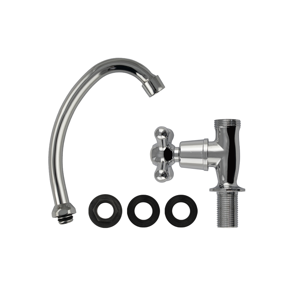 Кран на одну воду, хромированный, с аэратором для экономии воды. Материал изготовления — ЦАМ (цинк-алюминий-медь). Крепление резьба - гайка. Кранбукса м/к 1/2, ручка крест, поворот на 90˚. Габаритные размеры: высота 220 мм, длина 180 мм, диаметр посадочного седла 35 мм, длина резьбы 30 мм. Вес - 0,2400 кг, объём - 0,0009 м3. В комплекте корпус, крепёж, паспорт.