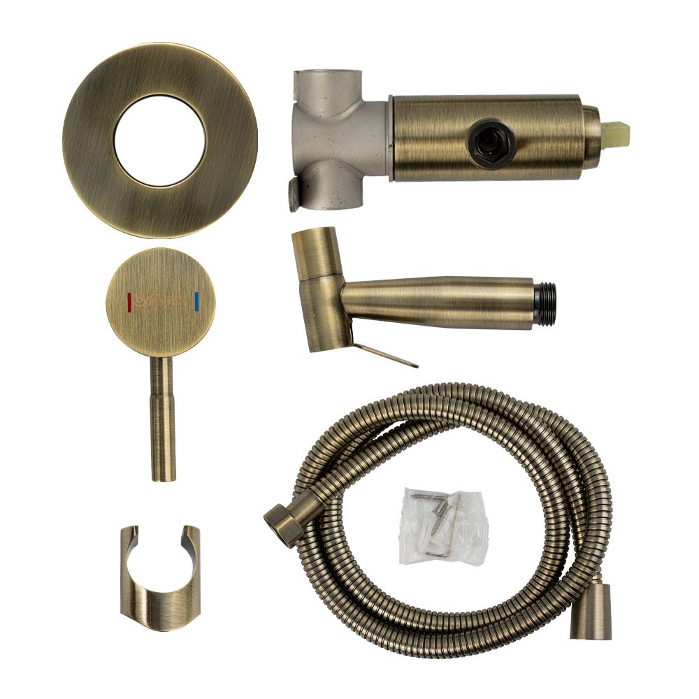Стильный смеситель с гигиенической лейкой выполнен из прочного, влагостойкого материала - нержавеющей стали и разработан для ванной и туалетной комнат, оформленных в современном стиле. Все металлические детали покрыты износостойким бронзовым покрытием, которое не тускнеет со временем и устойчиво к появлению царапин, благодаря чему устройство исправно прослужит долгие годы. Лейка душа сохраняет поверхность чистой – любые загрязнения с форсунок удаляются сухой салфеткой. Включает в себя смеситель и ручной душ с аксессуарами (держателем, шлангом). Гигиенический душ управляется при помощи нажимной кнопки. Стильный смеситель управляется изящным рычагом, позволяющим с легкостью регулировать напор и температуру воды. Габаритные размеры: высота лейки 105 мм, диаметр посадочного седла 75 мм, длина шланга 120 см. Вес - 1,23 кг, объём - 0,00414 м3. В комплект входит лейка/ смеситель/ душевой шланг/ крепёж.