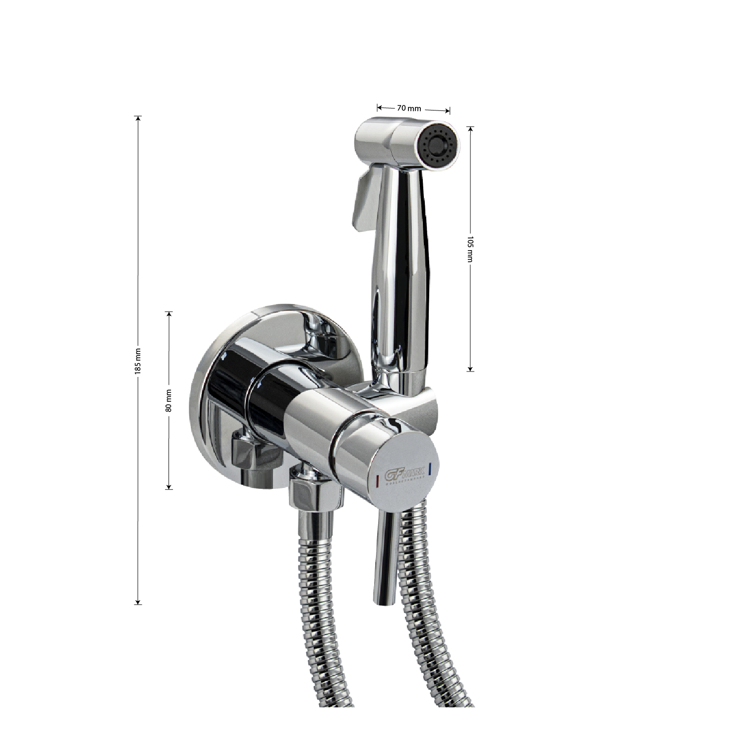 Стильный смеситель с гигиенической лейкой выполнен из прочного, влагостойкого материала - нержавеющей стали и разработан для ванной и туалетной комнат, оформленных в современном стиле. Все металлические детали покрыты износостойким хромированным покрытием, которое не тускнеет со временем и устойчиво к появлению царапин, благодаря чему устройство исправно прослужит долгие годы. Лейка душа сохраняет поверхность чистой – любые загрязнения с форсунок удаляются сухой салфеткой. Включает в себя смеситель и ручной душ с аксессуарами (держателем, шлангом). Гигиенический душ управляется при помощи нажимной кнопки. Стильный смеситель управляется изящным рычагом, позволяющим с легкостью регулировать напор и температуру воды. Габаритные размеры: глубина лейки 80 мм, высота лейки 105 мм, диаметр посадочного седла 80 мм. Вес - 1.15 кг, объём - 0.00417 м3. В комплект входит лейка/ смеситель/ душевой шланг/ крепёж.