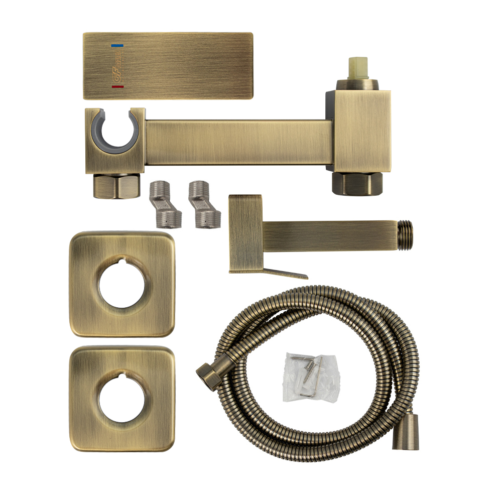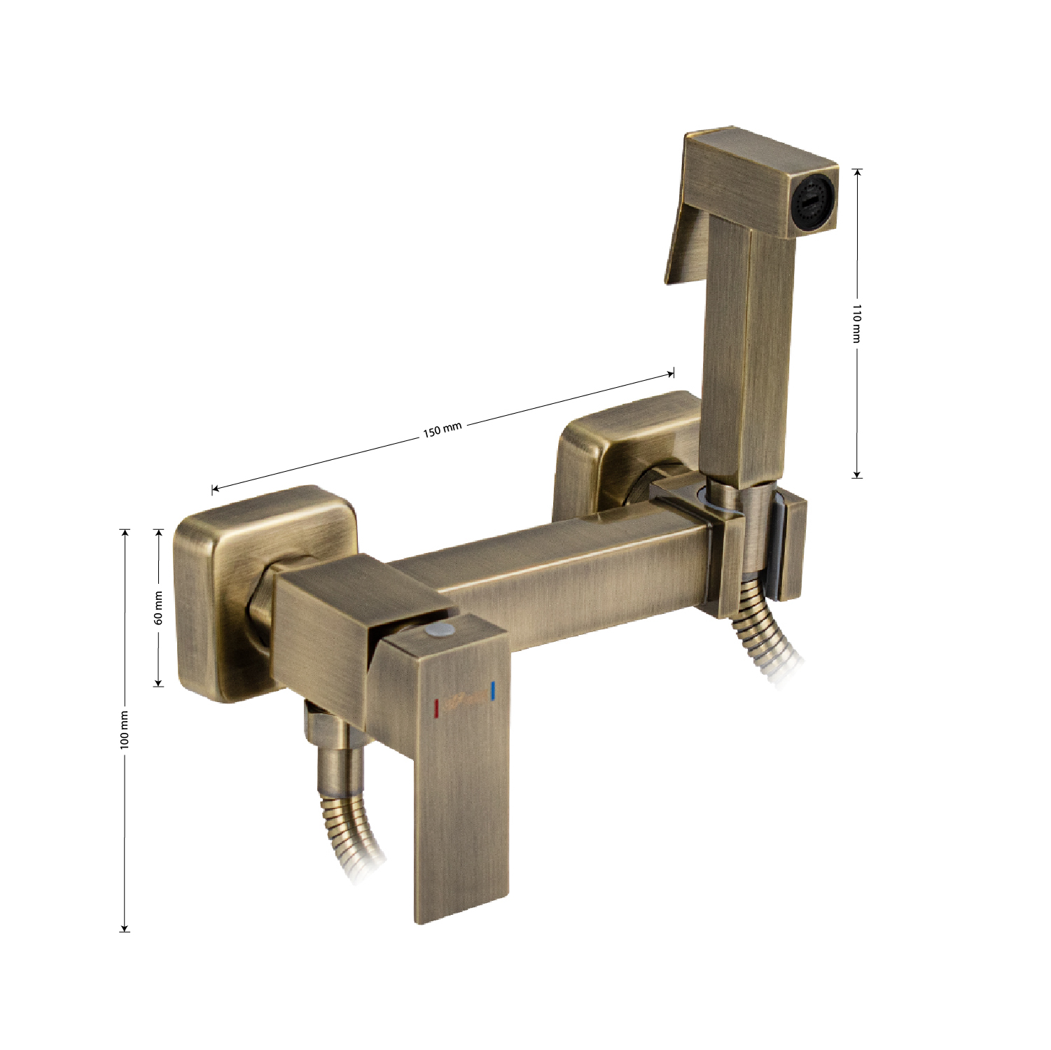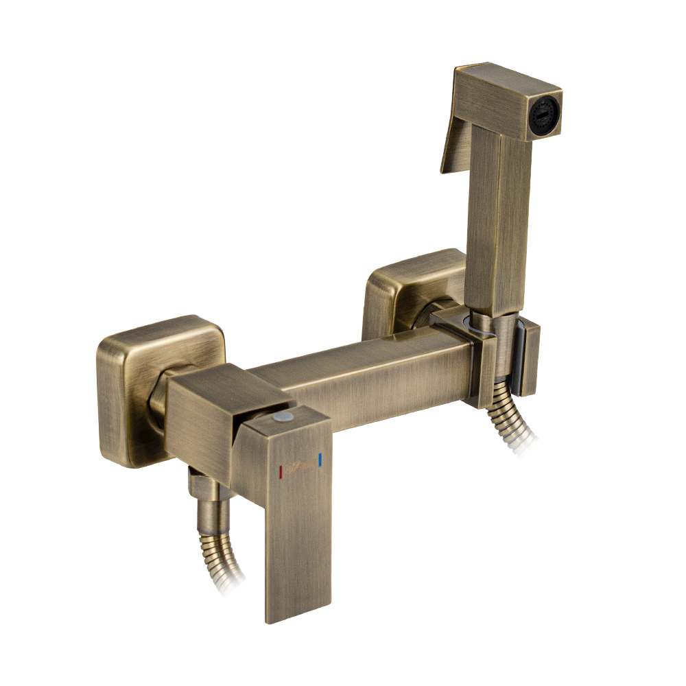 Смеситель с гигиеническим душем, из нержавеющей стали. Создаст комфортные условия для поддержания гигиены. Керамический картридж смешивает воду строго до желаемой температуры и подает ее с регулируемым напором. Управление осуществляется плавным и легким поворотом рычага. Эргономичная лейка включается за счет нажимного механизма. Она изготовлена из экологически безопасного материала, не подверженного коррозии и механическим деформациям. Бронзовое покрытие придает ей эстетичный вид. Габаритные размеры: высота 110 мм, ширина корпуса 150 мм, длина шланга 120 см, чашка 60*60 мм. Вес - 1,54 кг, объём - 0,00414 м3. В комплект входит корпус, лейка, смеситель, душевой шланг, крепёж