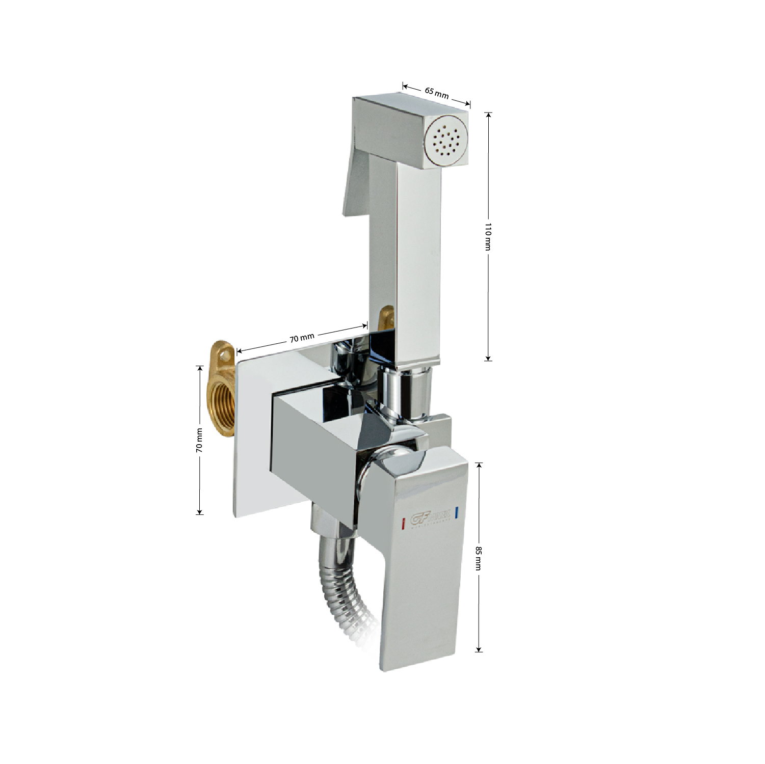 Стильный смеситель с гигиенической лейкой выполнен из прочного, влагостойкого материала - нержавеющей стали и разработан для ванной и туалетной комнат, оформленных в современном стиле. Все металлические детали покрыты износостойким хромированным покрытием, которое не тускнеет со временем и устойчиво к появлению царапин, благодаря чему устройство исправно прослужит долгие годы. Лейка душа сохраняет поверхность чистой – любые загрязнения с форсунок удаляются сухой салфеткой. Включает в себя смеситель и ручной душ с аксессуарами (держателем, шлангом). Гигиенический душ управляется при помощи нажимной кнопки. Стильный смеситель управляется изящным рычагом, позволяющим с легкостью регулировать напор и температуру воды. Габаритные размеры: высота лейки 110 мм, высота посадочного седла 70 мм, ширина посадочного седла 70 мм, глубина лейки 65 мм. Вес - 1,57 кг, объём - 0,0042 м3. В комплект входит лейка/ смеситель/ душевой шланг/ крепёж.