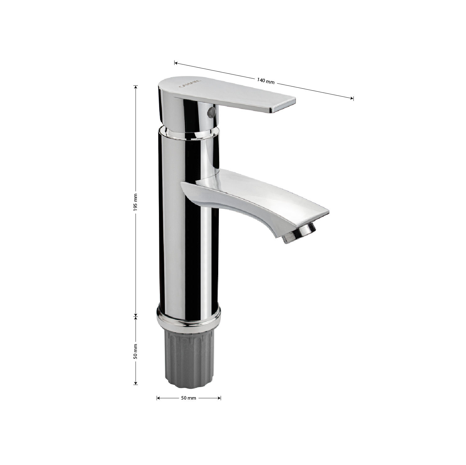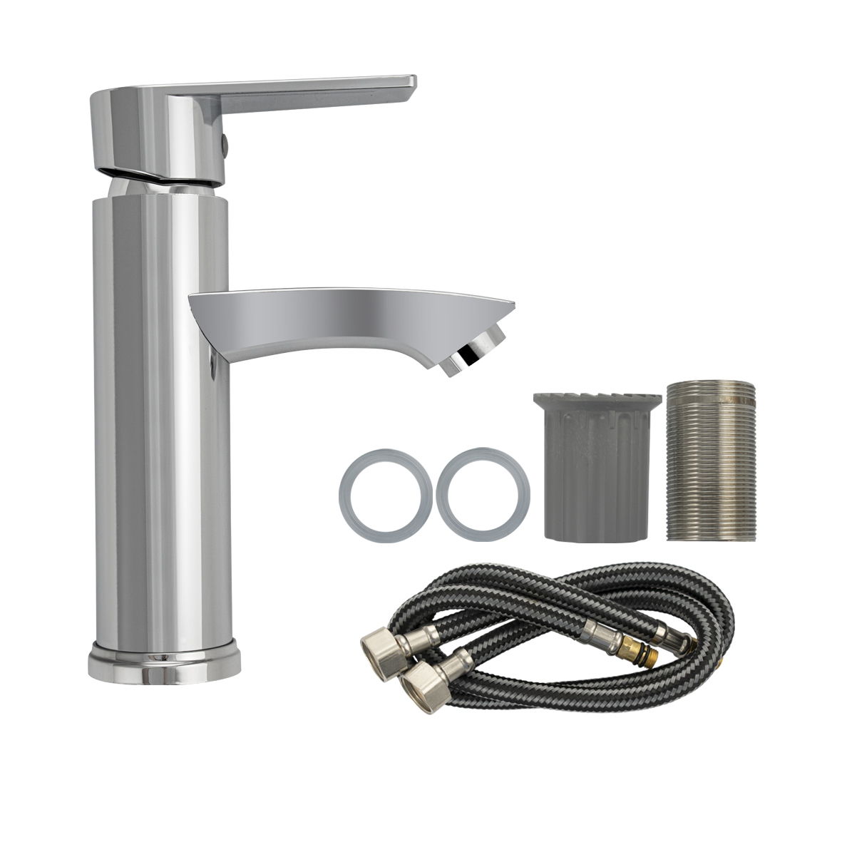 Смеситель для раковины, хромированный, из нержавеющей стали марки 304, с длинным изливом, литая ручка, шаровый. Крепление резьба - гайка, картридж d = 35 мм. Аэратор для экономии воды. Такая модель может использоваться на домашней кухне, на даче, в медицинских учреждениях и общественных местах. Габаритные размеры: высота 195 мм, длина 140 мм, диаметр посадочного седла 50 мм, длина резьбы 50 мм, длина подводки 500 мм. Вес - 0,99 кг, объём - 0,00269 м3. В комплекте паспорт, корпус, подводка 1/2, крепеж, набор прокладок.