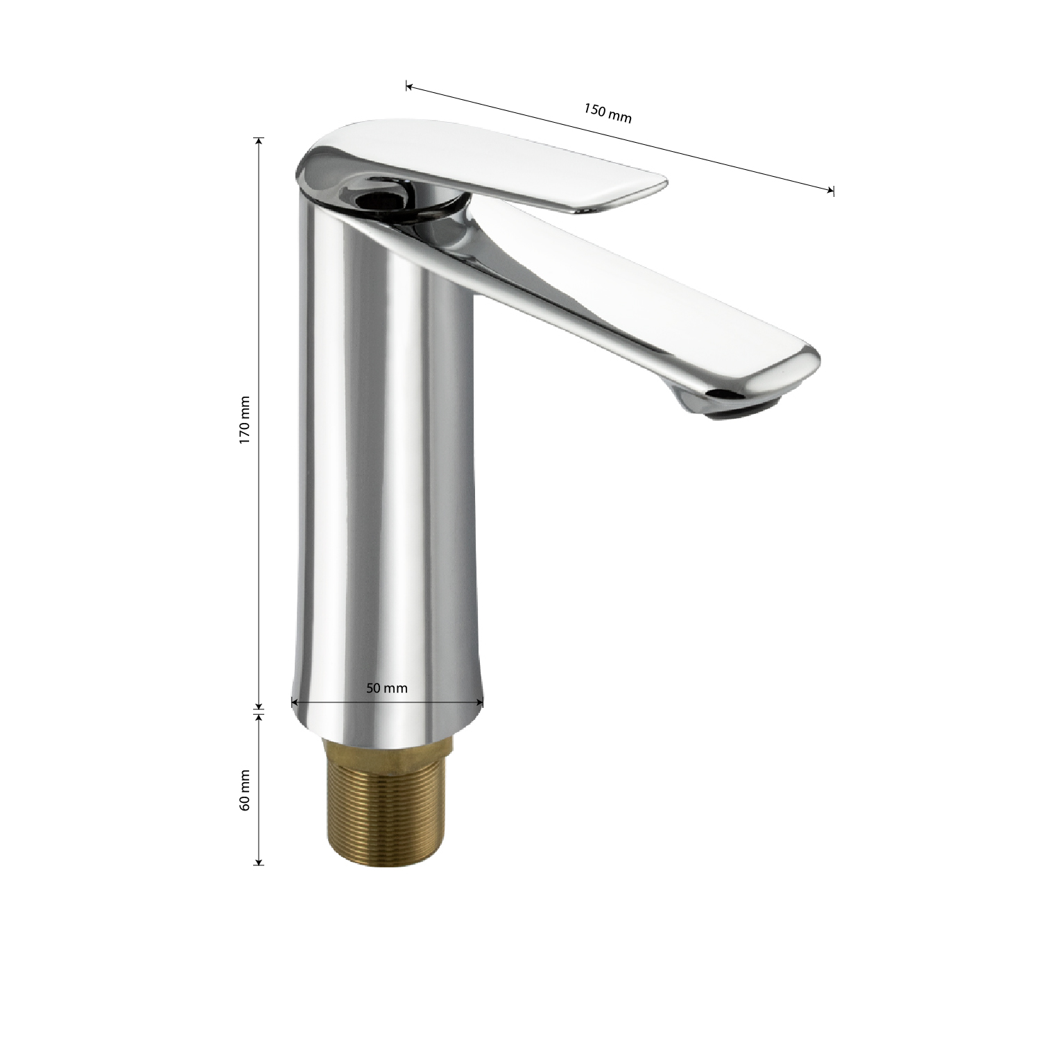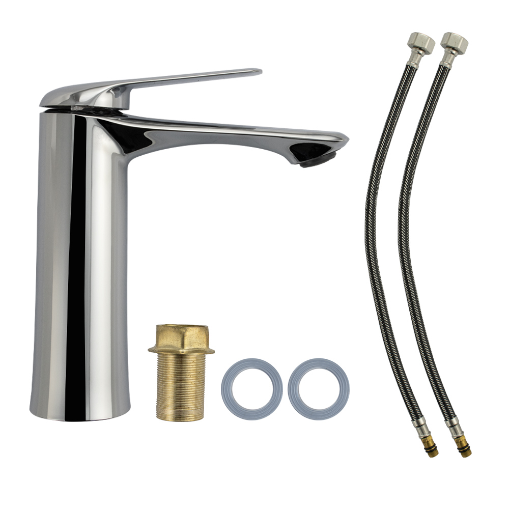 Смеситель для раковины, хромированный, с коротким изливом, литой корпус, литая ручка, шаровый. Материал изготовления — ЦАМ (цинк-алюминий-медь). Крепление резьба - гайка, картридж d = 35 мм. Аэратор для экономии воды. Габаритные размеры: высота 170 мм, длина 150 мм, диаметр посадочного седла 50 мм, длина резьбы 60 мм, длина подводки 400 мм. Вес - 1,250 кг, объём - 0,00264 м3. В комплекте паспорт, корпус, подводка 1/2, крепеж, набор прокладок. Габаритные размеры коробки: ширина 200 мм, высота 80 мм, глубина 165 мм.