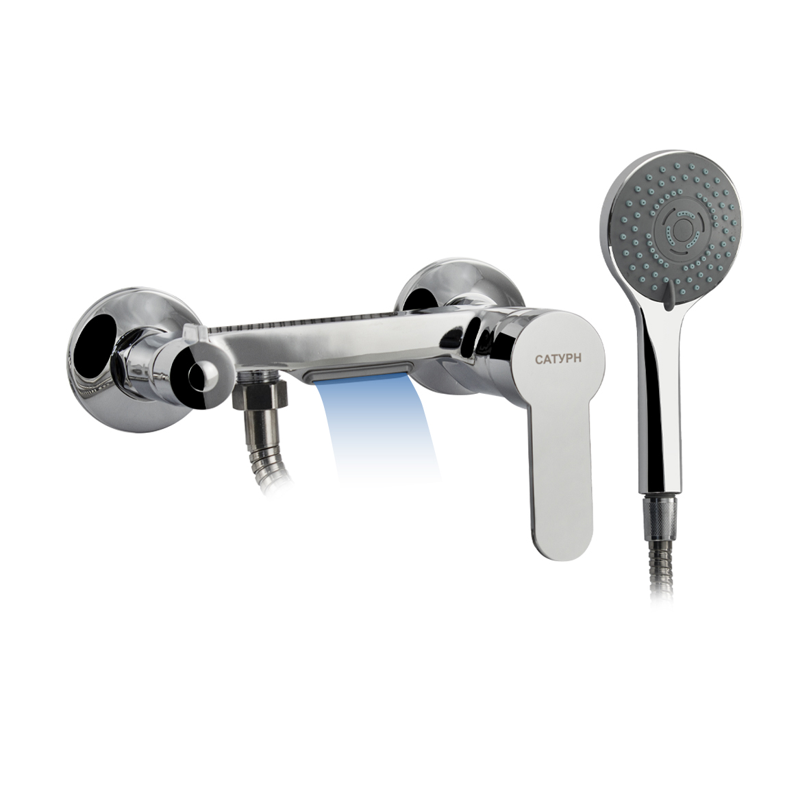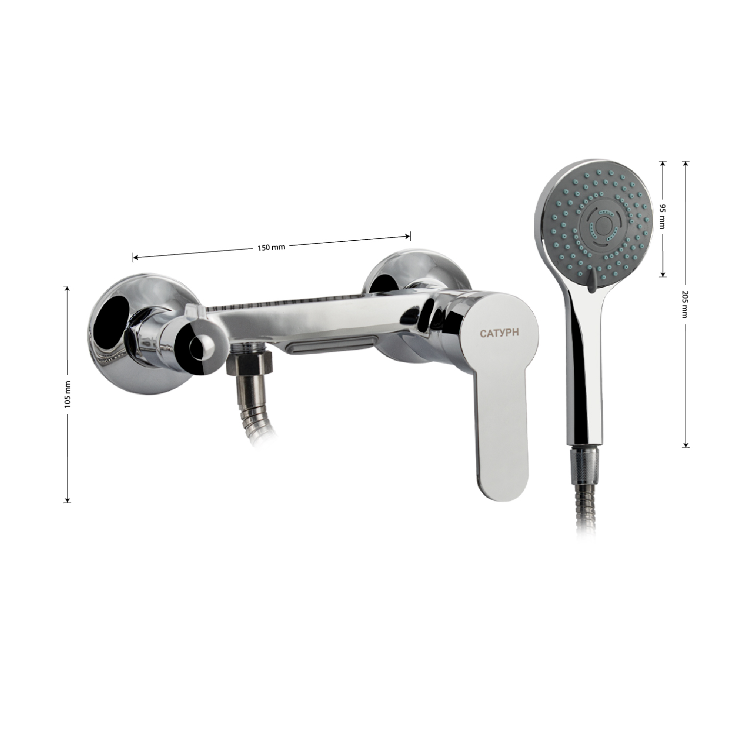 Смеситель в ДУШ, шаровый, система водопад, цвет ХРОМ. Габаритные размеры: ширина 150 мм, высота 105 мм, лейка диаметр 95 мм. Вес 1,3 кг, объем 0,00345 м3.
