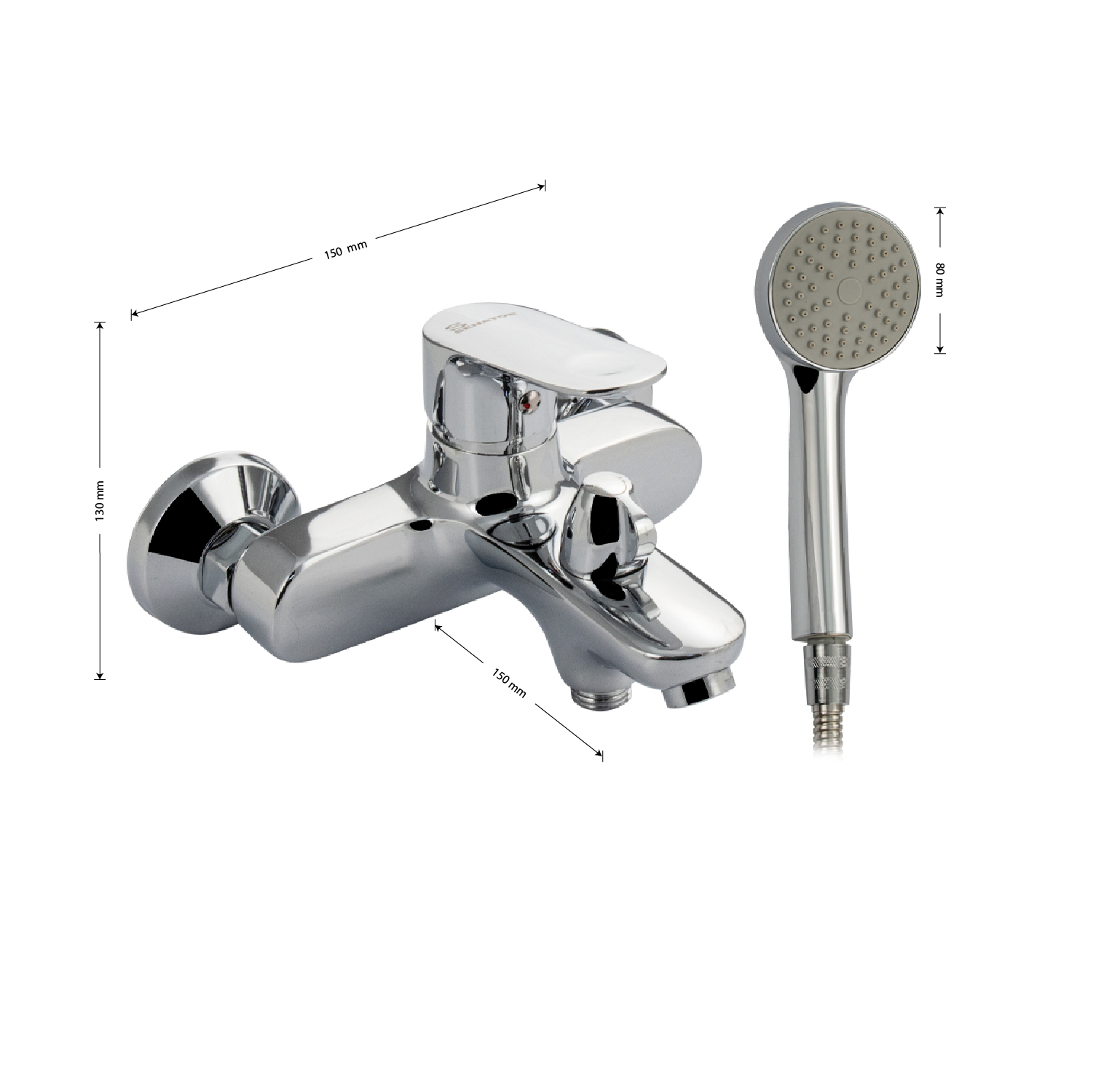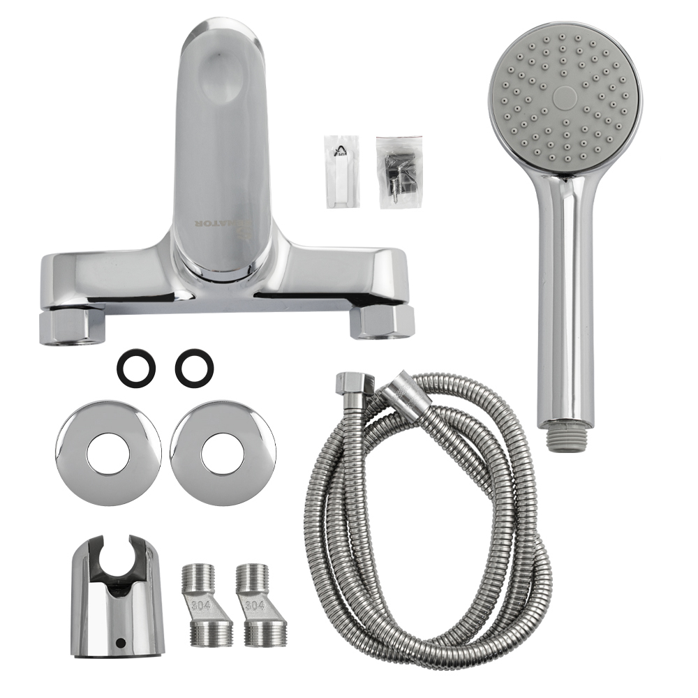 Смеситель хромированный в ванную / душевую комнату с коротким изливом, литой корпус, шаровый, поворотный дивертор на корпусе. Материал изготовления — ЦАМ (цинк-алюминий-медь) + нержавеющая сталь. Картридж d = 40 мм, литая ручка, аэратор для экономии воды, чашки и эксцентрики. Габаритные размеры: ширина 150 мм, высота корпуса 130 мм, длина излива 150 мм, душевая лейка, шланг 150 см. Вес - 2,000 кг, объём - 0,00675 м3. В комплекте паспорт, корпус с изливом, дивертор, душевая лейка, шланг, кронштейн, комплект крепежа и прокладок.