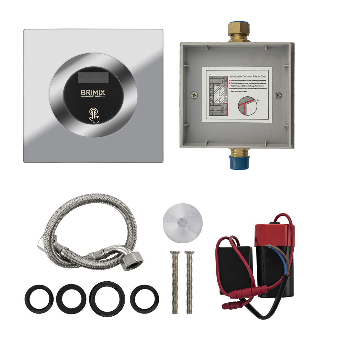Кран для писсуара, сенсорный, со скрытым подключением. Смывное устройство подходит для писсуаров с внутреннем подводом воды. Модель с сенсорным включением практична в эксплуатации. Сенсор срабатывает плавно и мягко от взмаха и от прикосновения. Качественное хромированное покрытие гигиенично, за ним легко ухаживать, и оно не теряет блеска при длительном использовании. Благодаря стильному дизайну смывное устройство создаст идеальный комплект с писсуаром. Работает от питания сети и батареек Высота в сборе 133 мм, ширина 133 мм. Вес - 1.5 кг, объём - 0.0080 м3. В комплекте корпус, соединительная трубка, комплект прокладок, крепёж
