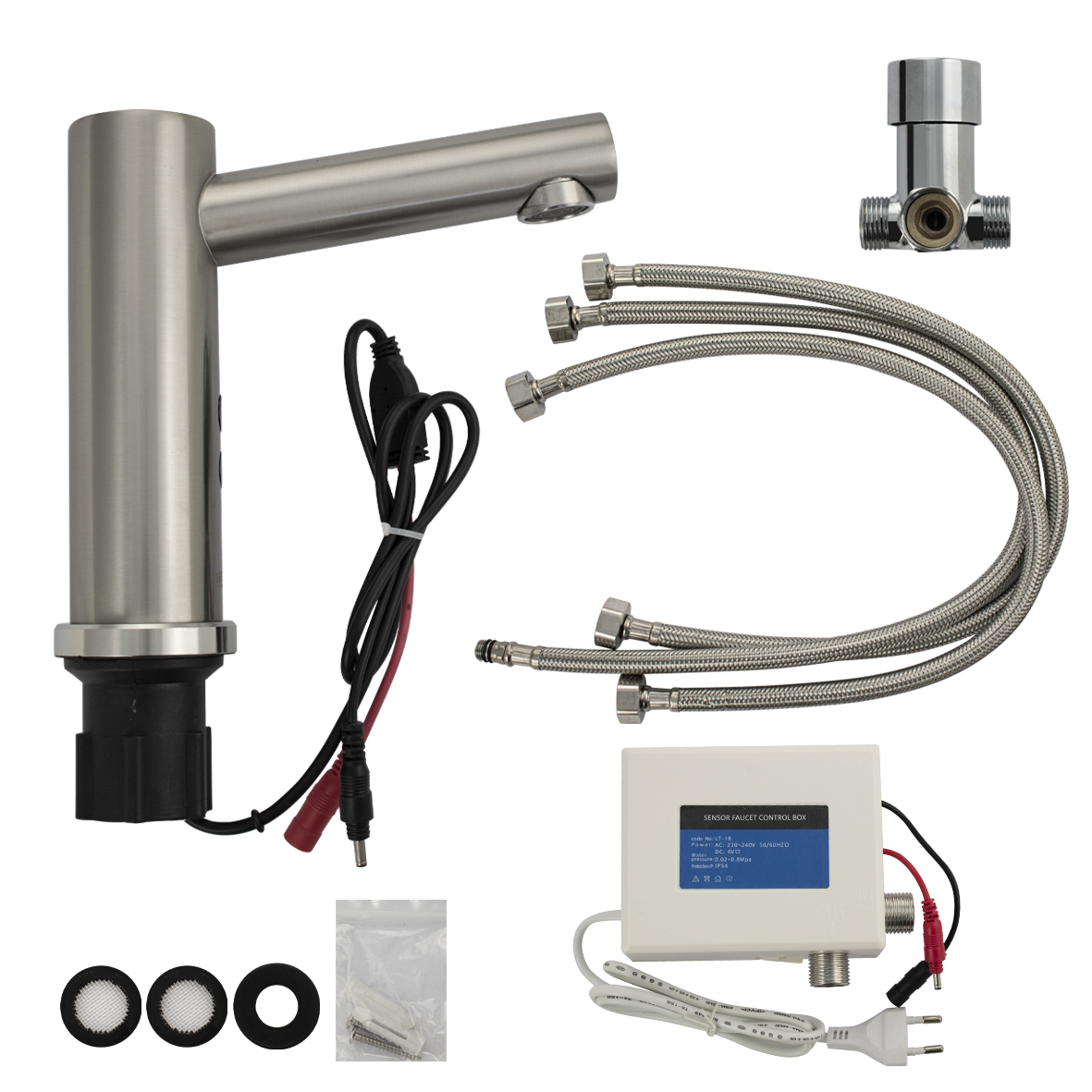 Сенсорный смеситель на раковину предназначен для монтажа в жилых домах и общественных помещениях. С возможностью подключения к сети и работы от батареек. Изделие выполнено в стиле хай-тек из высококачественного материала - нержавеющая сталь, матовый цвет обеспечивает устойчивость к механическим воздействиям. Кран смешивания горячей и холодной воды с возможностью регулировки размещается под столешницей. Кран включится, если поднести руки к изливу. Бесконтактный принцип работы гарантирует гигиеничность устройства. Устройство снабжено аэратором, позволяющей очистку без использования дополнительных средств. Он насыщает воду воздухом для создания струи, комфортной для гигиенических процедур, и сокращения расхода ценного ресурса. Сенсорный смеситель включает поток воды за счет фотоэлемента. Универсальное питание DC 6V (4 батареи типа "АА", в комплектацию не входят), AC/DC 6V AC 220V (50/60Hz). Габаритные размеры: диаметр посадочного седла 50 мм, высота 160 мм, длина излива 170 мм. Вес - 1,85 кг, объём - 0,006 м3.