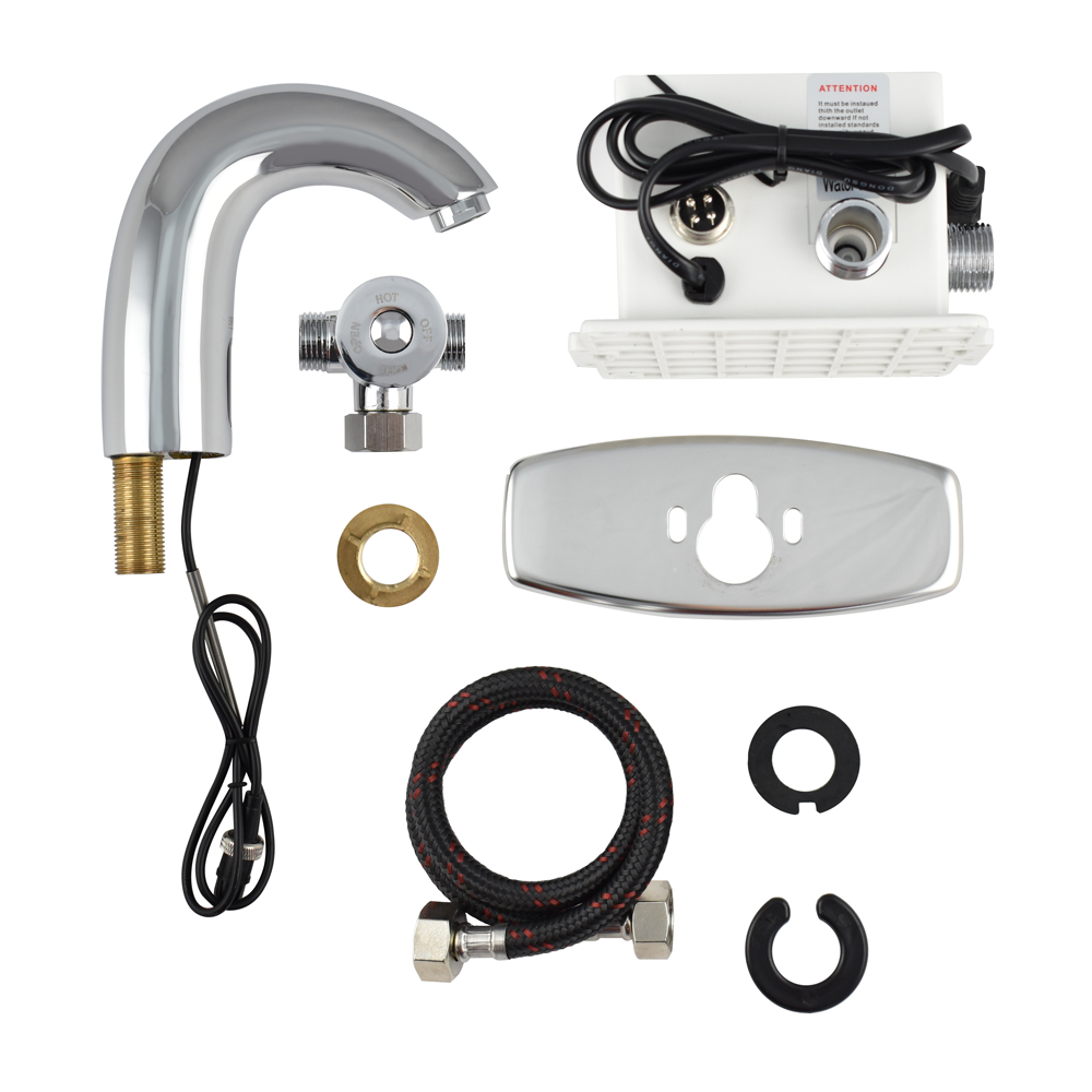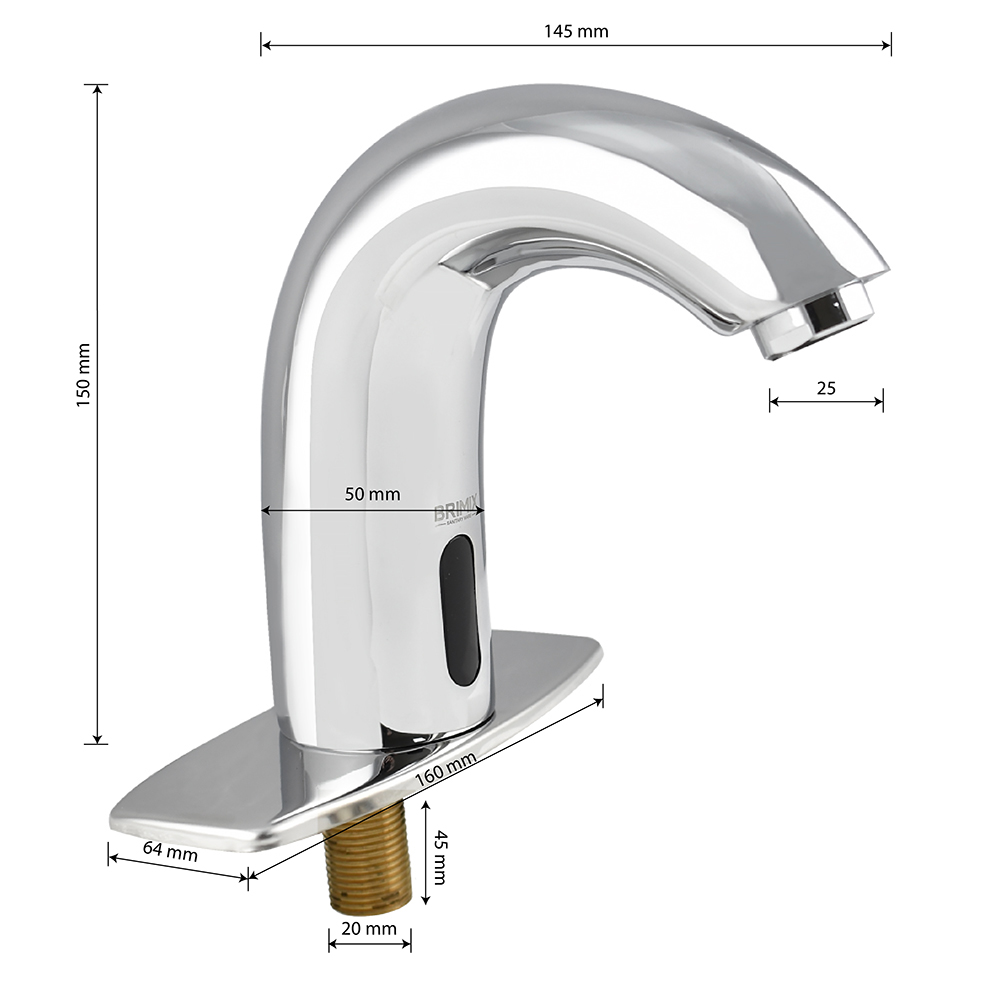 Сенсорный смеситель предназначен для монтажа в жилых домах и общественных помещениях. Изделие выполнено в стиле хай-тек из высококачественного материала с хромовым покрытием, обеспечивающим устойчивость к механическим воздействиям. Кран смешивания горячей и холодной воды с возможностью регулировки размещается под столешницей. Кран включится, если поднести руки к изливу. Бесконтактный принцип работы гарантирует гигиеничность устройства. Устройство снабжено аэратором, позволяющей очистку без использования дополнительных средств. Он насыщает воду воздухом для создания струи, комфортной для гигиенических процедур, и сокращения расхода ценного ресурса. Сенсорный смеситель включает поток воды за счет фотоэлемента. Универсальное питание DC 6V (4 батареи типа "АА", в комплектацию не входят), AC/DC 6V AC 220V (50/60Hz). Габаритные размеры основания 160 х 64 мм, высота 150 мм, длина излива 145 мм. Вес - 1,950 кг, объём - 0,00621 м3. В комплекте паспорт, корпус, нижняя часть с программным управлением, крепёж.