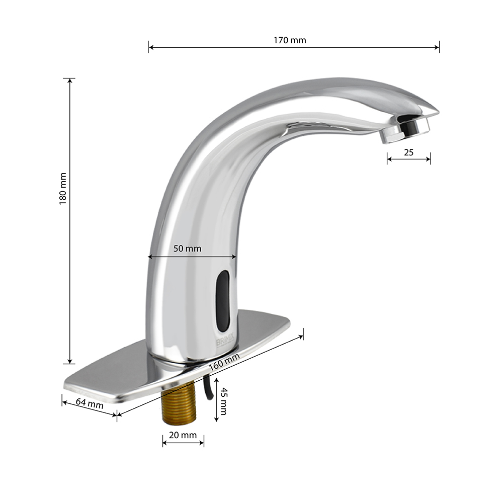 Сенсорный смеситель предназначен для монтажа в жилых домах и общественных помещениях. Изделие выполнено в стиле хай-тек из высококачественного материала с хромовым покрытием, обеспечивающим устойчивость к механическим воздействиям. Кран смешивания горячей и холодной воды с возможностью регулировки размещается под столешницей. Кран включится, если поднести руки к изливу. Бесконтактный принцип работы гарантирует гигиеничность устройства. Устройство снабжено аэратором, позволяющей очистку без использования дополнительных средств. Он насыщает воду воздухом для создания струи, комфортной для гигиенических процедур, и сокращения расхода ценного ресурса. Сенсорный смеситель включает поток воды за счет фотоэлемента. Универсальное питание DC 6V (4 батареи типа "АА", в комплектацию не входят), AC/DC 6V AC 220V (50/60Hz). Габаритные размеры основания 160 х 64 мм, высота 180 мм, длина излива 170 мм. Вес - 2,000 кг, объём - 0,00621 м3. В комплекте паспорт, корпус, нижняя часть с программным управлением, крепёж.