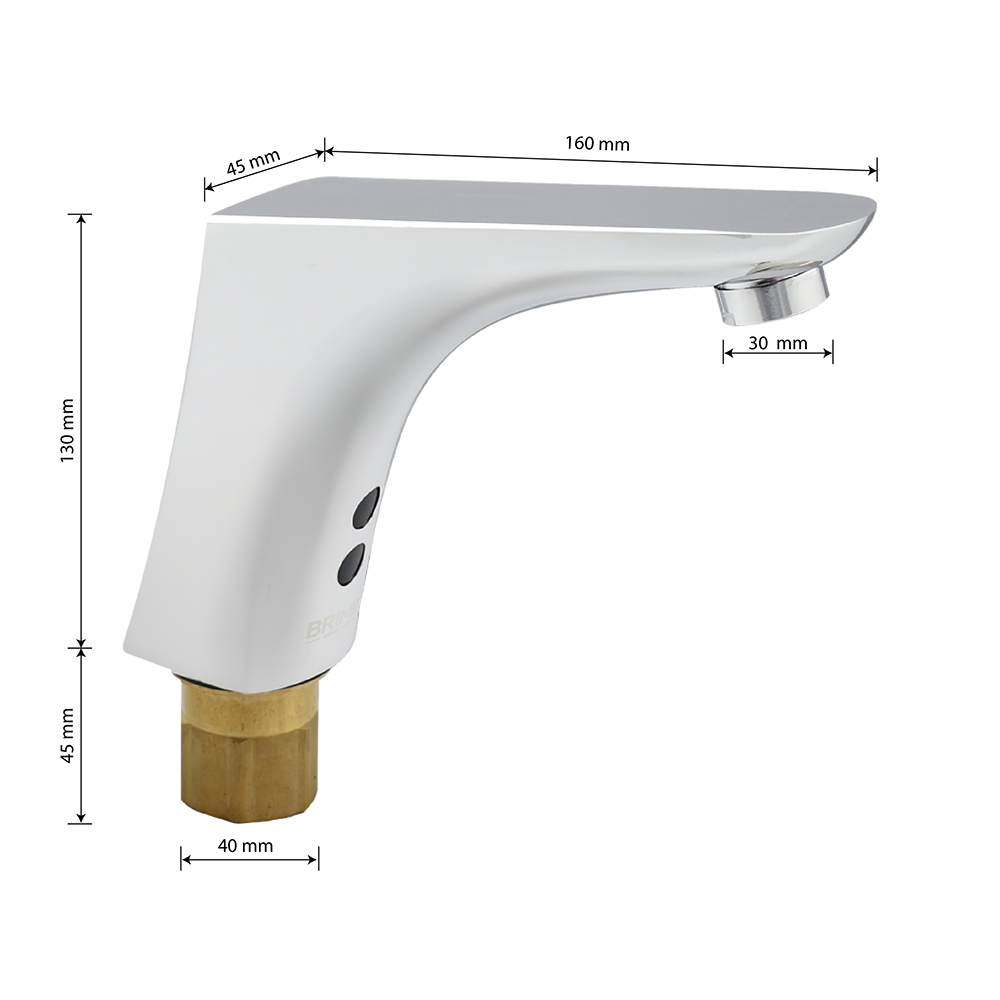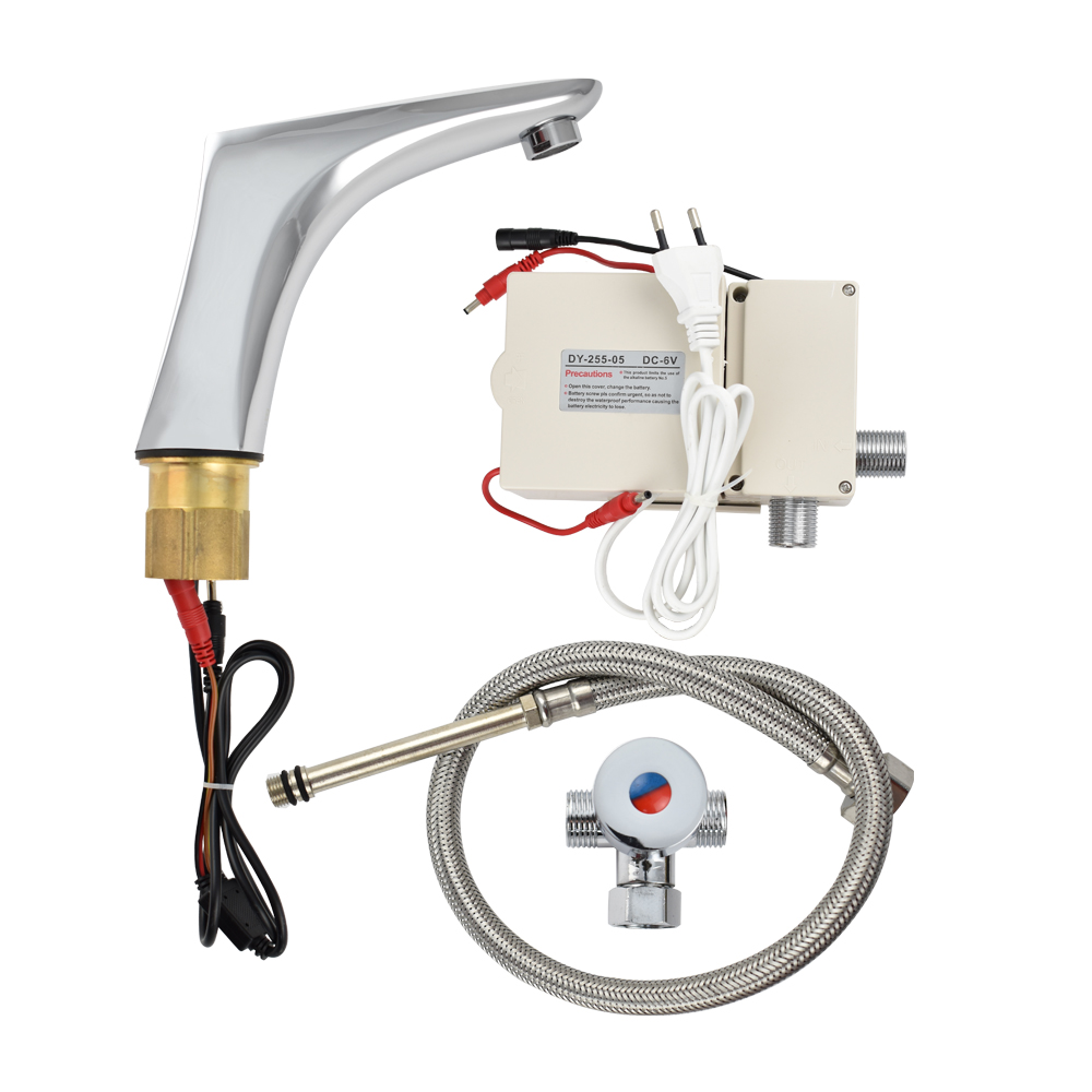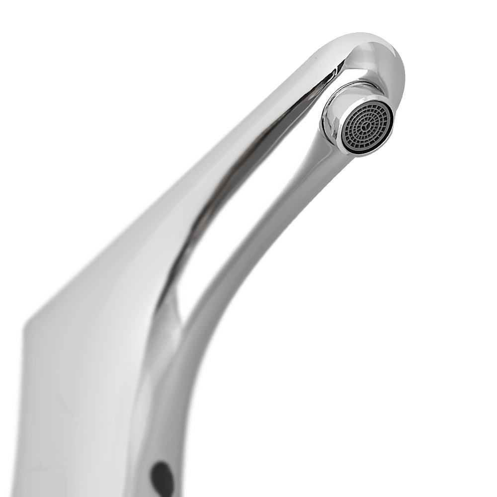 Сенсорный смеситель на раковину предназначен для монтажа в жилых домах и общественных помещениях. Изделие выполнено в стиле хай-тек из высококачественного материала с хромовым покрытием, обеспечивающим устойчивость к механическим воздействиям. Кран смешивания горячей и холодной воды с возможностью регулировки размещается под столешницей. Кран включится, если поднести руки к изливу. Бесконтактный принцип работы гарантирует гигиеничность устройства. Устройство снабжено аэратором, позволяющей очистку без использования дополнительных средств. Он насыщает воду воздухом для создания струи, комфортной для гигиенических процедур, и сокращения расхода ценного ресурса. Сенсорный смеситель включает поток воды за счет фотоэлемента. Универсальное питание DC 6V (4 батареи типа "АА", в комплектацию не входят), AC/DC 6V AC 220V (50/60Hz). Габаритные размеры: диаметр посадочного седла 45 мм, высота 130 мм, длина излива 160 мм. Вес - 2,300 кг, объём - 0,0075 м3. В комплекте паспорт, корпус, нижняя часть с программным управлен