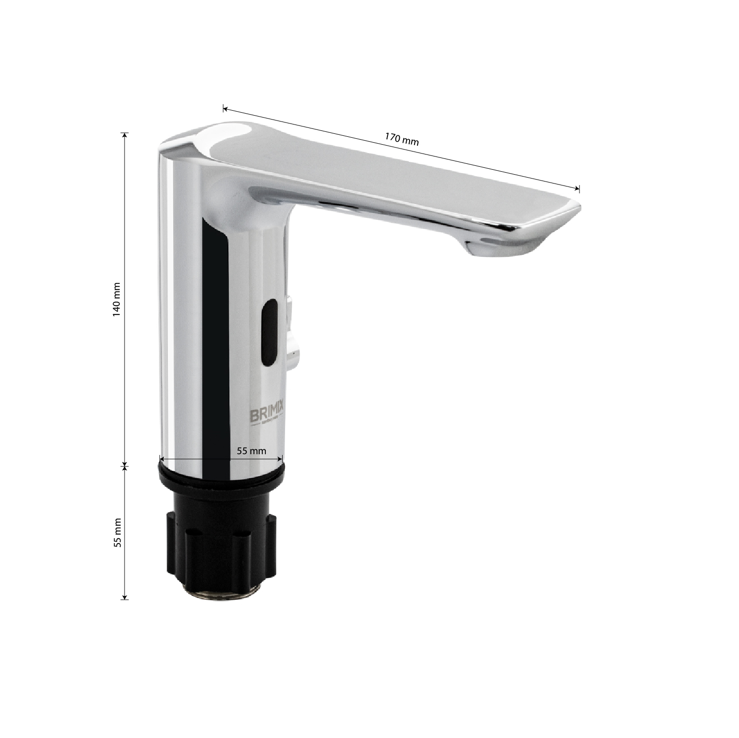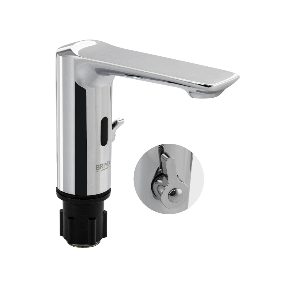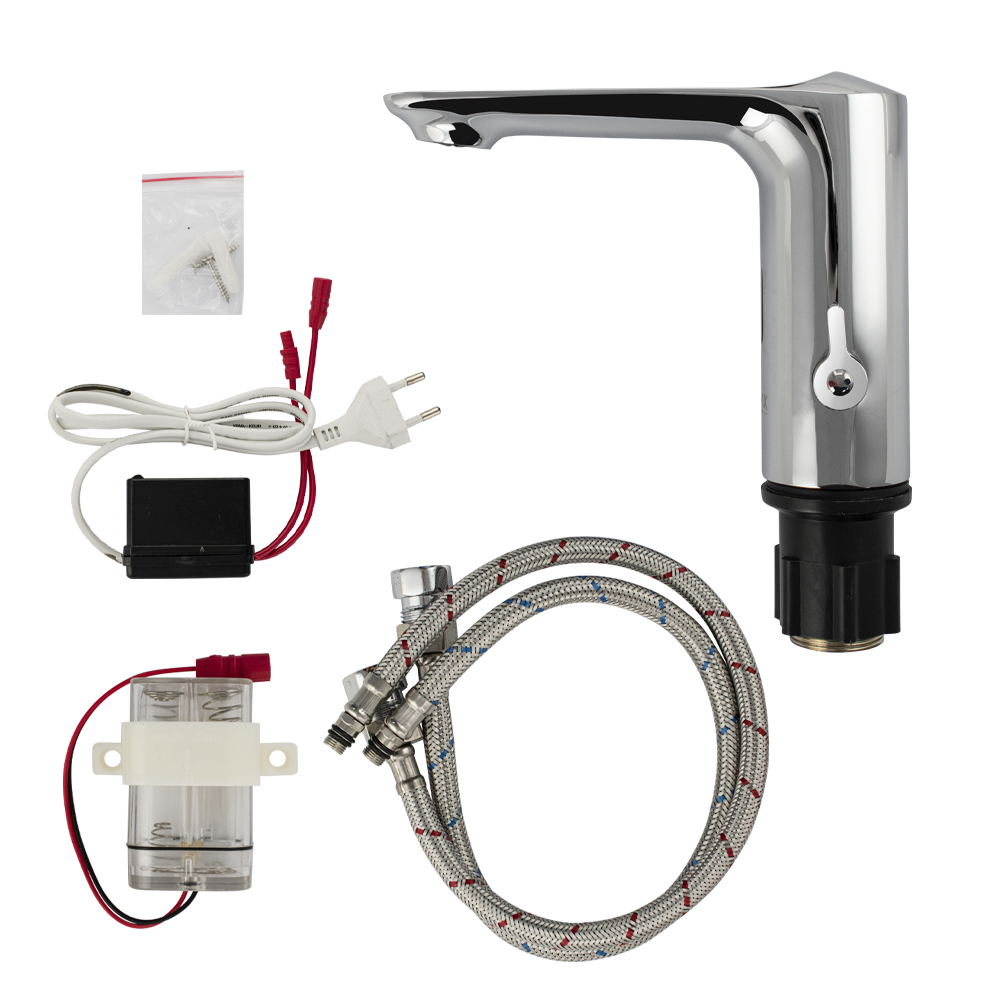 Сенсорный смеситель на раковину с регулировкой температуры воды на корпусе, предназначен для монтажа в жилых домах и общественных помещениях. Изделие выполнено в стиле хай-тек из высококачественного материала с хромовым покрытием, обеспечивающим устойчивость к механическим воздействиям. Кран смешивания горячей и холодной воды с возможностью регулировки размещается на корпусе. Кран включится, если поднести руки к изливу. Бесконтактный принцип работы гарантирует гигиеничность устройства. Устройство снабжено аэратором, позволяющей очистку без использования дополнительных средств. Он насыщает воду воздухом для создания струи, комфортной для гигиенических процедур, и сокращения расхода ценного ресурса. Сенсорный смеситель включает поток воды за счет фотоэлемента. Универсальное питание DC 6V (4 батареи типа "АА", в комплектацию не входят), AC/DC 6V AC 220V (50/60Hz). Габаритные размеры: высота 140 мм, длина излива 170 мм, диаметр посадочного седла 55 мм. Вес - 1,80 кг, объём - 0,0060 м3. В комплекте паспорт, корпу