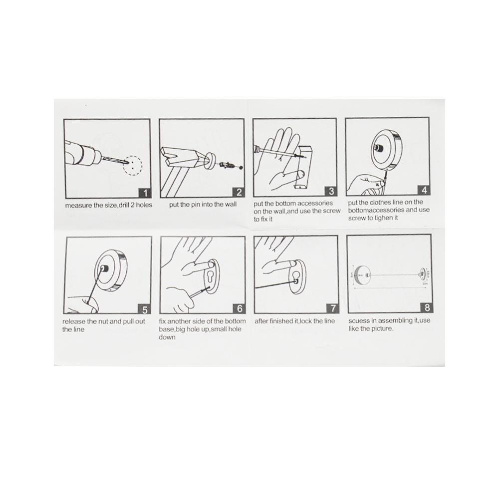 Компактная сушилка для белья позволяет быстро и с комфортом высушивать мокрое белье и полотенца. Она выполнена из нержавеющей стали с хромовым покрытием, что обуславливает надежность и долговечность ее эксплуатации. Веревка свободно вытягивается до 3000 мм и крепится между двумя стенами. Для лучшего натяжения при необходимости ее можно укоротить. Конструкция выдерживает нагрузку до 5 кг. Габаритные размеры: диаметр 95 мм, глубина 30 мм. Вес - 0,280 кг, объём - 0,00060 м3. Габаритные размеры коробки: ширина 100 мм, высота 100 мм, глубина 60 мм.