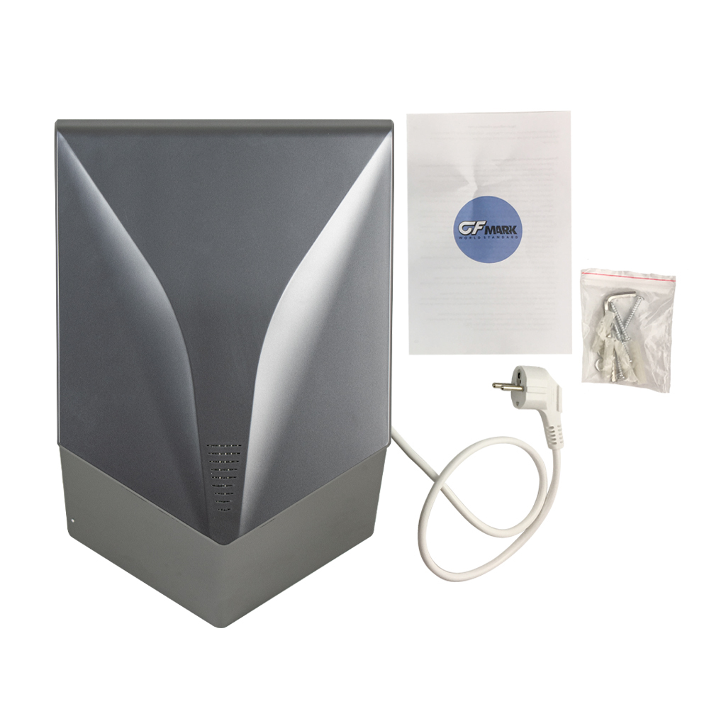 Электрическая сушилка для рук, скоростная, c направленным потоком воздуха из двух плоских сопел, расположенных под углом друг к другу, цвет серый, с неоновой подсветкой, незаменима в местах с большой проходимостью людей (бизнес-центры, торговые центры, гостиницы, кинотеатры, рестораны). Корпус сушилки изготовлен из прочного пластика АБС серого цвета, который выдерживает различные механические воздействия. Прибор отличается средней мощностью и большой скоростью, что позволит использовать оборудование в различных помещениях с ограниченным электропотреблением или старой проводкой. Для удобства эксплуатации в сушилке для рук предусмотрен инфракрасный датчик движения, который включает прибор без прикосновения к нему, при поднесении рук. Сушилка оснащена надёжным и долговечным двигателем. Прибор облачён в ударопрочный корпус. Параметры - 1000W, автоматическая, АС 220-230В 50/60Гц, сенсор включения 50 - 150 мм, скорость потока >95 м/c, температура воздуха >40°C, влагозащищенность IPX4. В комплекте сушилка, паспорт,
