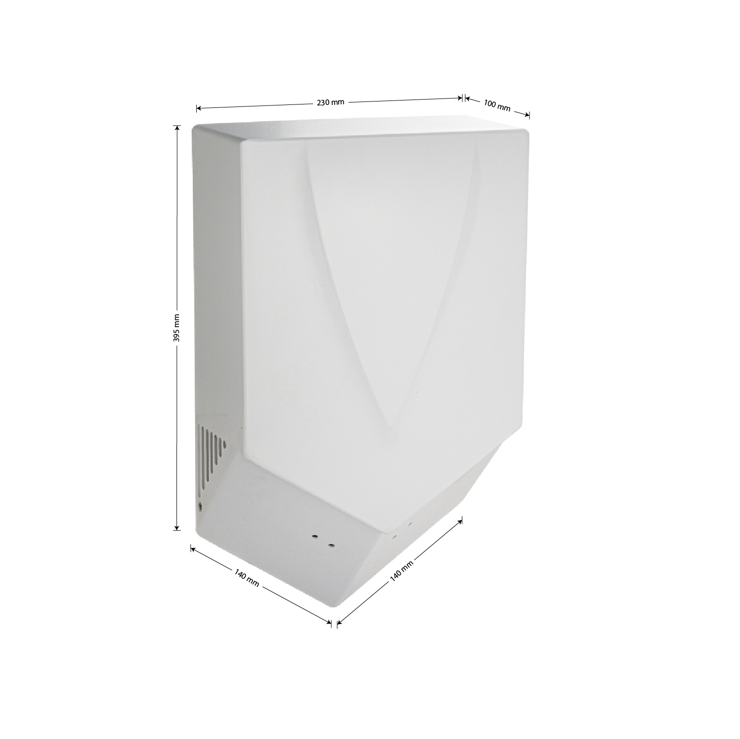 Электрическая сушилка для рук, скоростная, c направленным потоком воздуха из двух плоских сопел, расположенных под углом друг к другу, цвет белый, с неоновой подсветкой, незаменима в местах с большой проходимостью людей (бизнес-центры, торговые центры, гостиницы, кинотеатры, рестораны). Корпус сушилки изготовлен из прочного пластика АБС белого цвета, который выдерживает различные механические воздействия. Прибор отличается средней мощностью и большой скоростью, что позволит использовать оборудование в различных помещениях с ограниченным электропотреблением или старой проводкой. Для удобства эксплуатации в сушилке для рук предусмотрен инфракрасный датчик движения, который включает прибор без прикосновения к нему, при поднесении рук. Сушилка оснащена надёжным и долговечным двигателем. Прибор облачён в ударопрочный корпус. Параметры - 1200W, автоматическая, АС 220-230В 50/60Гц, сенсор включения 50 - 150 мм, скорость потока >95 м/c, температура воздуха >40°C, влагозащищенность IPX4. В комплекте сушилка, паспорт,