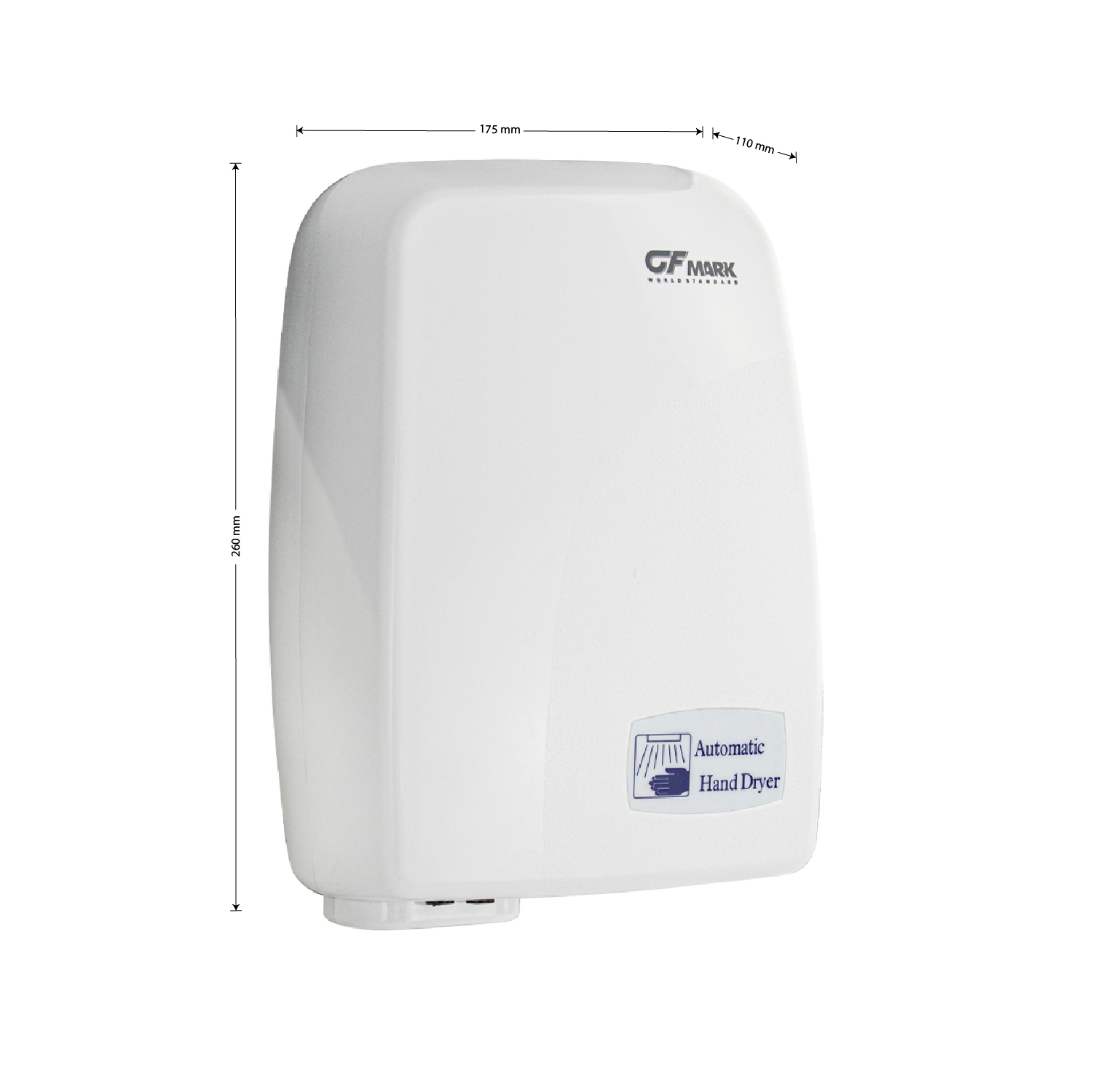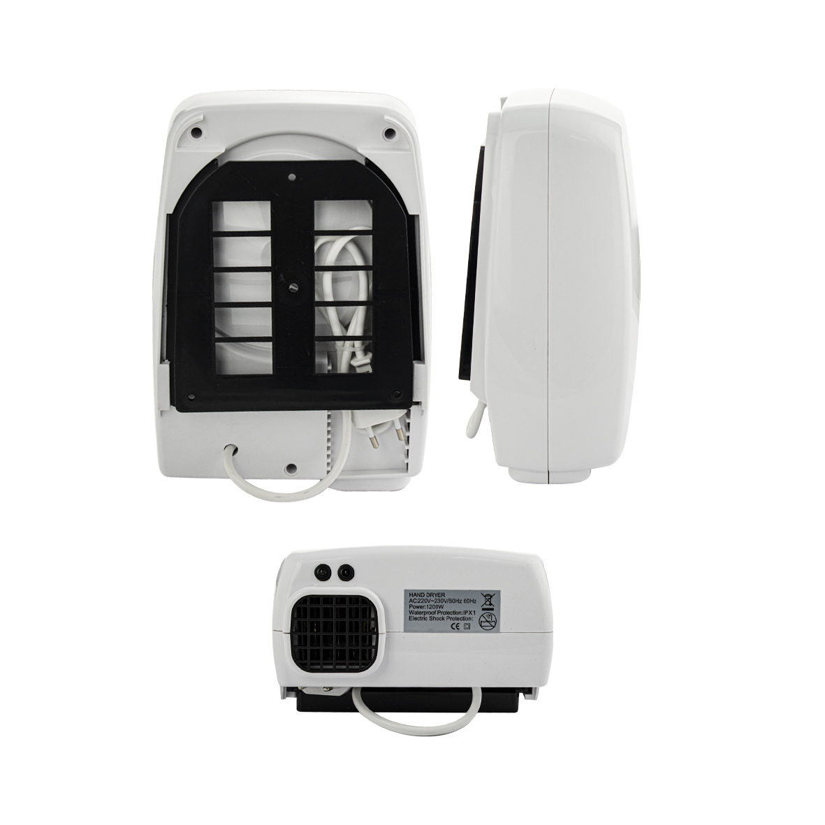 Электрическая сушилка для рук, белая, незаменима в местах с большой проходимостью людей (бизнес-центры, торговые центры, гостиницы, кинотеатры, рестораны). Корпус сушилки изготовлен из прочного пластика АБС белого цвета, который выдерживает различные механические воздействия. Прибор отличается средней мощностью, что позволит использовать оборудование в различных помещениях с ограниченным электропотреблением или старой проводкой. Для удобства эксплуатации в сушилке для рук предусмотрен инфракрасный датчик движения, который включает прибор без прикосновения к нему, при поднесении рук. Сушилка оснащена надёжным и долговечным двигателем. Прибор облачён в ударопрочный корпус. Параметры - 1200W, автоматическая, АС 220-230В 50/60Гц, сенсор включения до 140 мм, скорость потока >12м/c, температура воздуха >54°C, влагозащищенность IPX1. В комплекте сушилка, паспорт, крепёж Габаритные размеры: высота 260 мм, ширина 175 мм, глубина 110 мм. Вес - 1,48 кг, объем - 0,008 м3.
