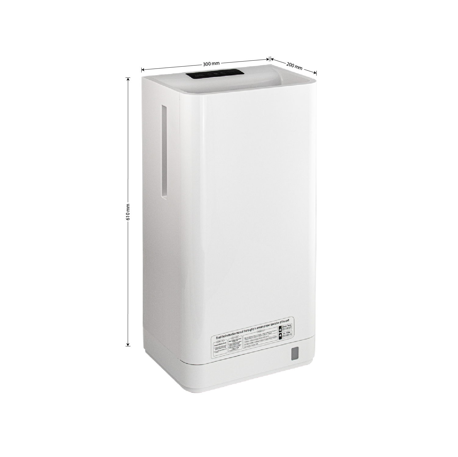 Сушилка для рук погружная, высокоскоростная, бизнес класса, корпус пластик АБС, цвет белый, с неоновой подсветкой. Режим работы горячий - холодный воздух. Две скорости 1800 Вт. Датчик перегрева. НЕРА фильтр. Время работы 7-9 сек. Габаритные размеры: высота 610 мм, ширина 300 мм, глубина 200 мм. Вес - 8,500 кг, объем - 0,06030 м3. В комплекте сушилка, паспорт, крепёж.