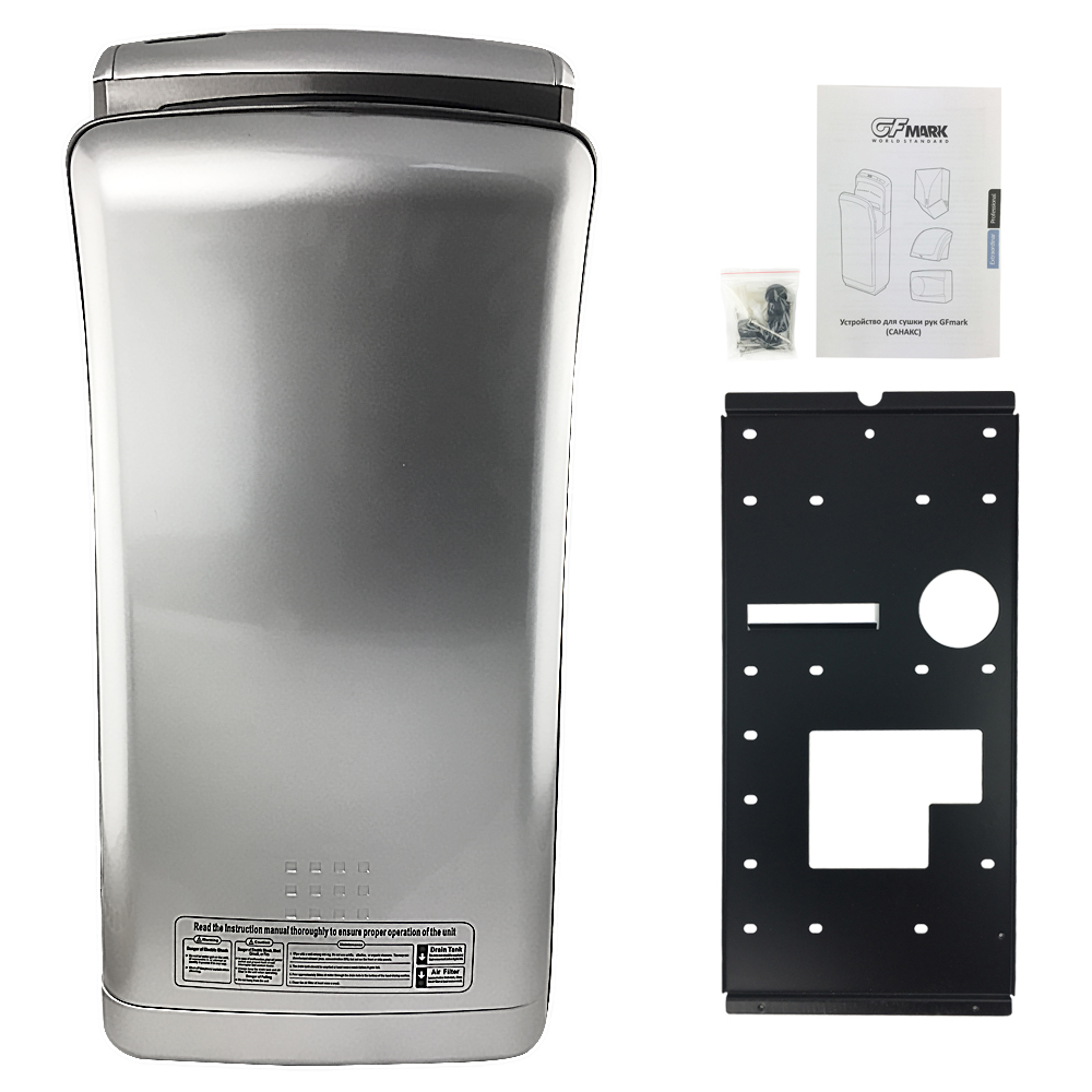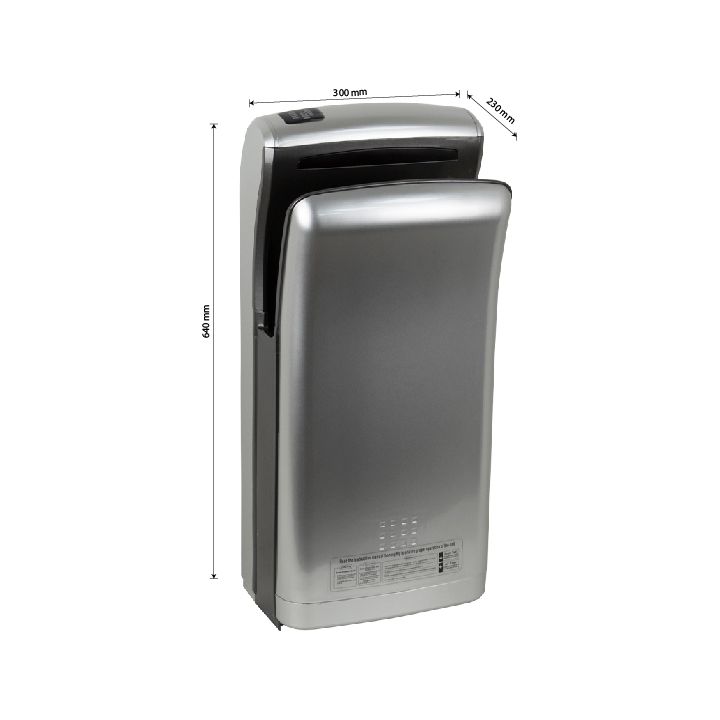 Электрическая сушилка для рук, ПРЕМИУМ, погружная, высокоскоростная, бизнес класса, с датчиком температуры и световым индикатором, цвет серый, с неоновой подсветкой, незаменима в местах с большой проходимостью людей (бизнес-центры, торговые центры, гостиницы, кинотеатры, рестораны). Корпус сушилки изготовлен из прочного пластика АБС серого цвета, который выдерживает различные механическое воздействие. Прибор отличается высокой мощностью и большой скоростью, что позволит использовать оборудование в различных помещениях. Для удобства эксплуатации в сушилке для рук предусмотрен инфракрасный датчик движения, который включает прибор без прикосновения к нему, при поднесении рук. Сушилка оснащена надёжным и долговечным двигателем. Прибор облачён в ударопрочный корпус. Со сливным отверстием и поддоном для влаги. Индикатор температуры выходящего воздуха, индикатор оставшегося времени. Подсветка при активности. Параметры - 2000W. Мощность мотора - 800 Вт, автоматическая, АС 220-230В 50/60Гц, сенсор включения 50 - 150