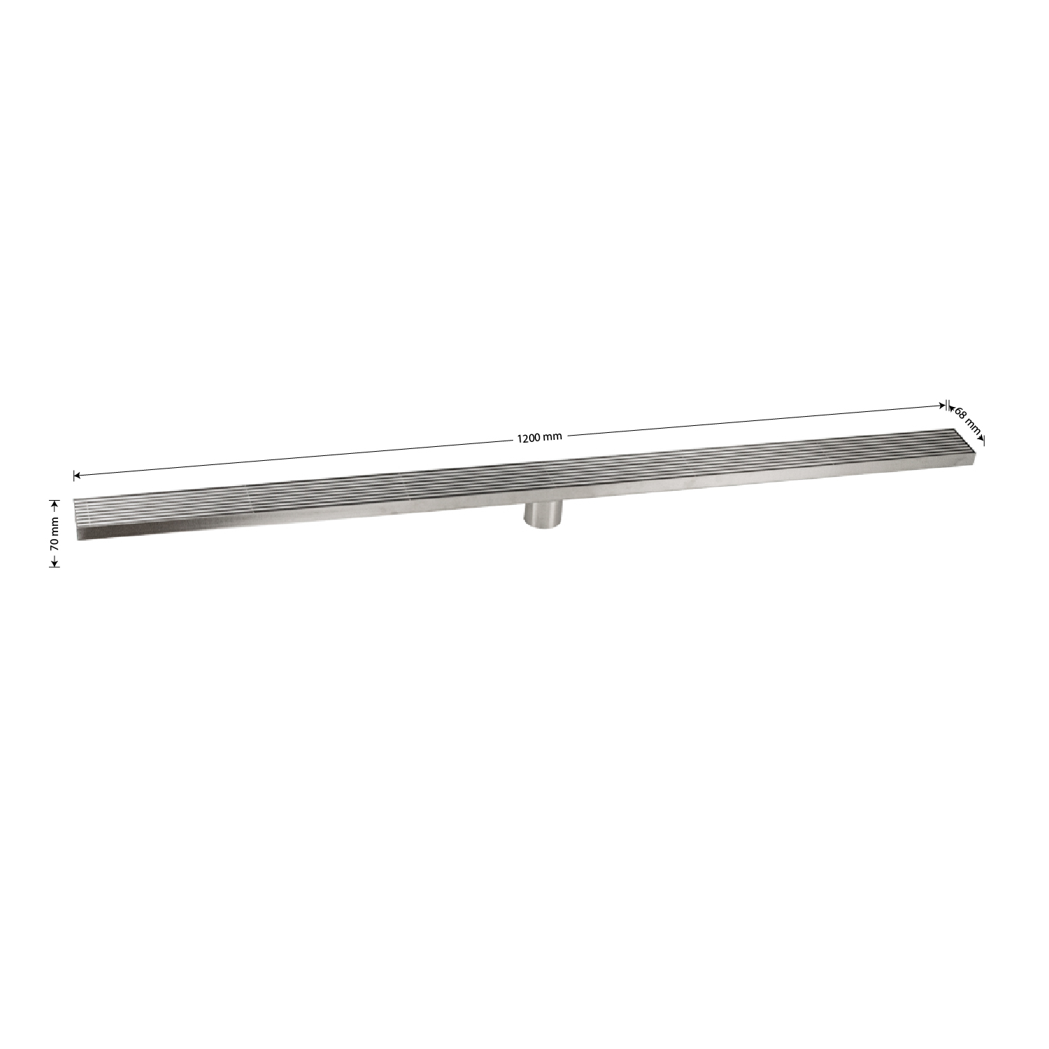 Душевой сливной трап из нержавеющей стали, матовый, линейный, вертикальный с гидрозатвором – это специальный элемент сантехнических коммуникаций, предназначенный для отвода воды в систему канализации. Как правило, душевые трапы устанавливаются непосредственно в пол. Благодаря небольшим габаритам и высоте душевые трапы идеальны для установки в душевых зонах. Это важно для организации пространства, где нет возможности установить классическую ванну: в малогабаритных квартирах, студиях, совмещенных санузлах и т.п. Габаритные размеры: высота 70 мм, ширина 68 мм, длина 1200 мм, выход в канализацию 50 мм. Вес - 3,000 кг, объём - 0,00800 м3.