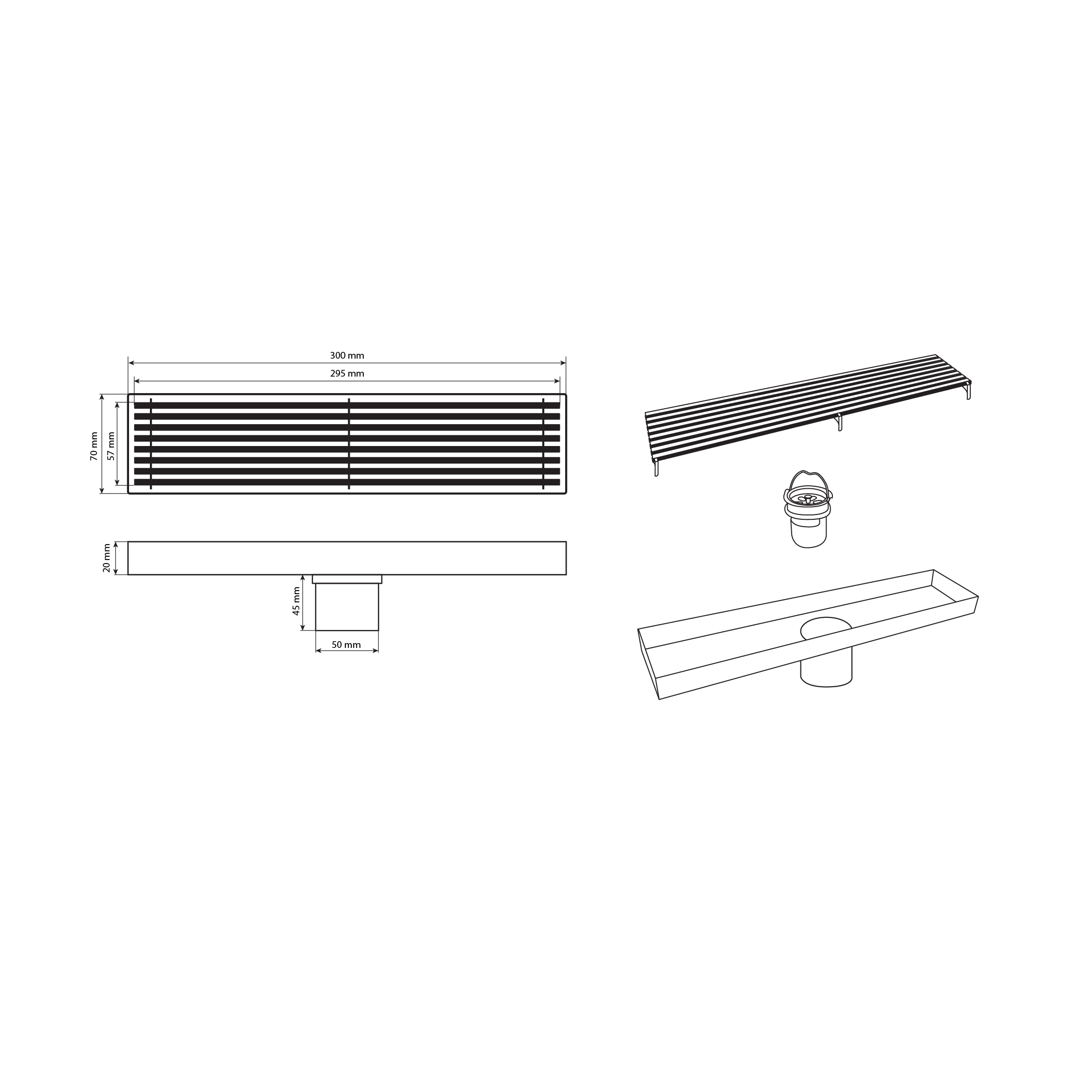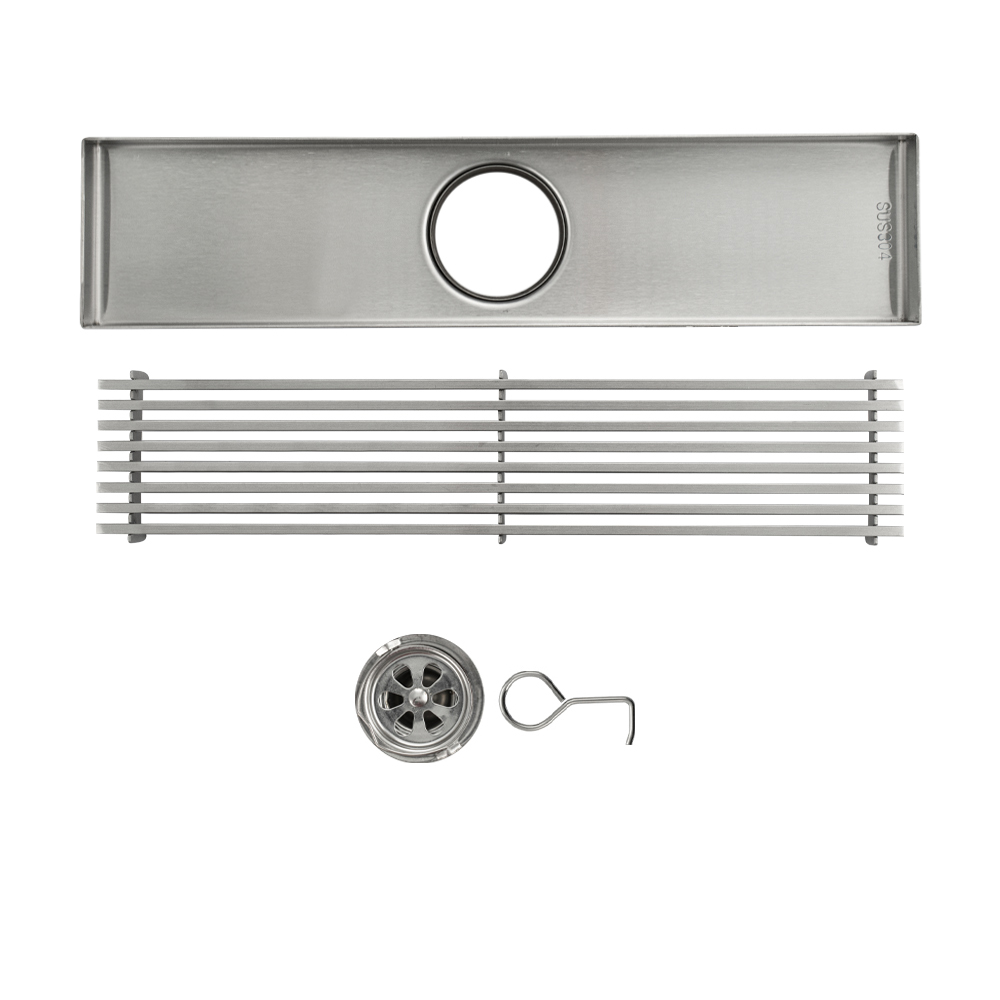 Душевой сливной трап из нержавеющей стали, линейный, вертикальный с гидрозатвором, крышка решётка – это специальный элемент сантехнических коммуникаций, предназначенный для отвода воды в систему канализации. Как правило, душевые трапы устанавливаются непосредственно в пол. Благодаря небольшим габаритам и высоте душевые трапы идеальны для установки в душевых зонах. Это важно для организации пространства, где нет возможности установить классическую ванну: в малогабаритных квартирах, студиях, совмещенных санузлах и т.п. Габаритные размеры: высота 70 мм, ширина 70 мм, длина 300 мм, выход в канализацию 50 мм. Вес - 0,900 кг, объём - 0,00200 м3.