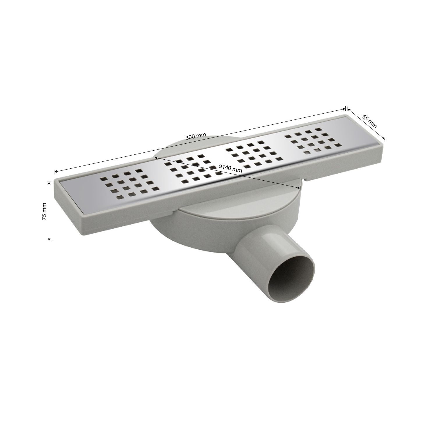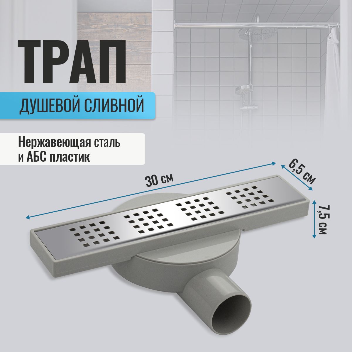 Душевой сливной трап из нержавеющей стали и пластика АБС, линейный, горизонтальный с гидрозатвором, это специальный элемент сантехнических коммуникаций, предназначенный для отвода воды в систему канализации. Как правило, душевые трапы устанавливаются непосредственно в пол. Благодаря небольшим габаритам и высоте душевые трапы идеальны для установки в душевых зонах. Это важно для организации пространства, где нет возможности установить классическую ванну: в малогабаритных квартирах, студиях, совмещенных санузлах и т.п. Габаритные размеры: высота 75 мм, ширина 65 мм, длина 300 мм, выход в канализацию 50 мм. В комлекте вращающийся слив на 360°. Вес - 0,800 кг, объём - 0,00410 м3.